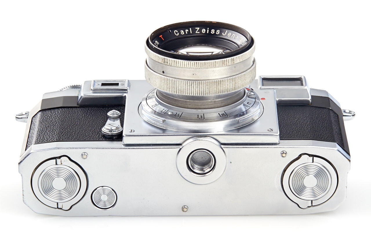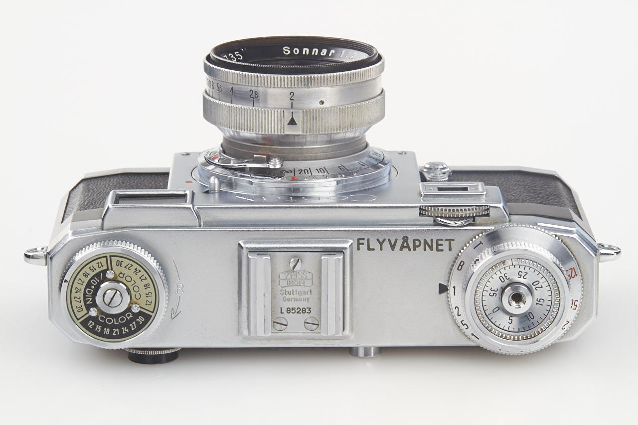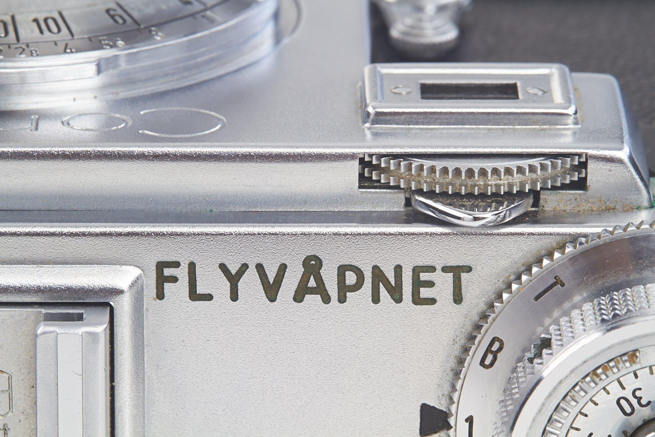 extremely rare camera with original engraving 'FLYVAPNET' (Norwegian Air Force), in excellent condition, with T coated Carl Zeiss Jena Sonnar 2/5cm no.3050735, front cap