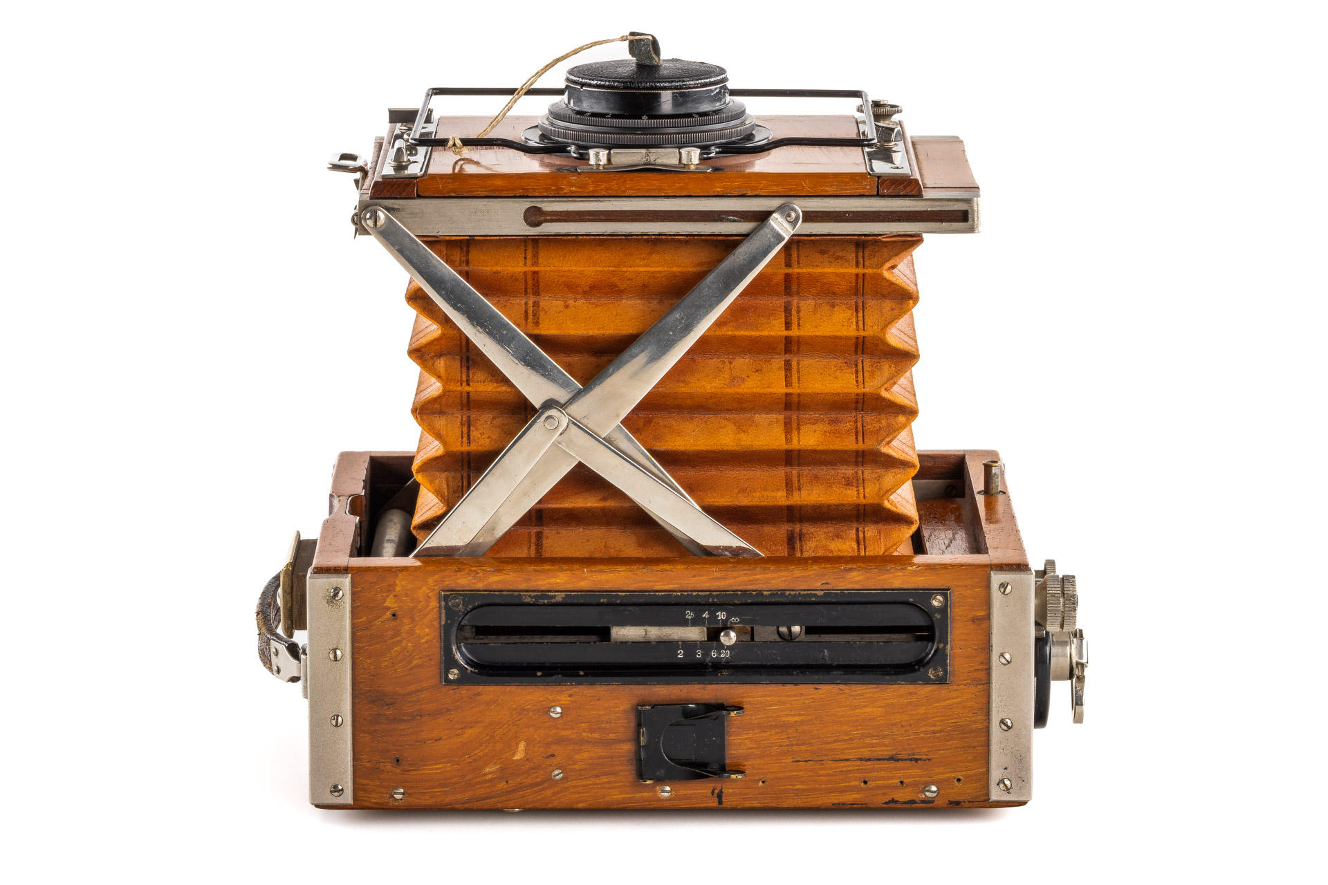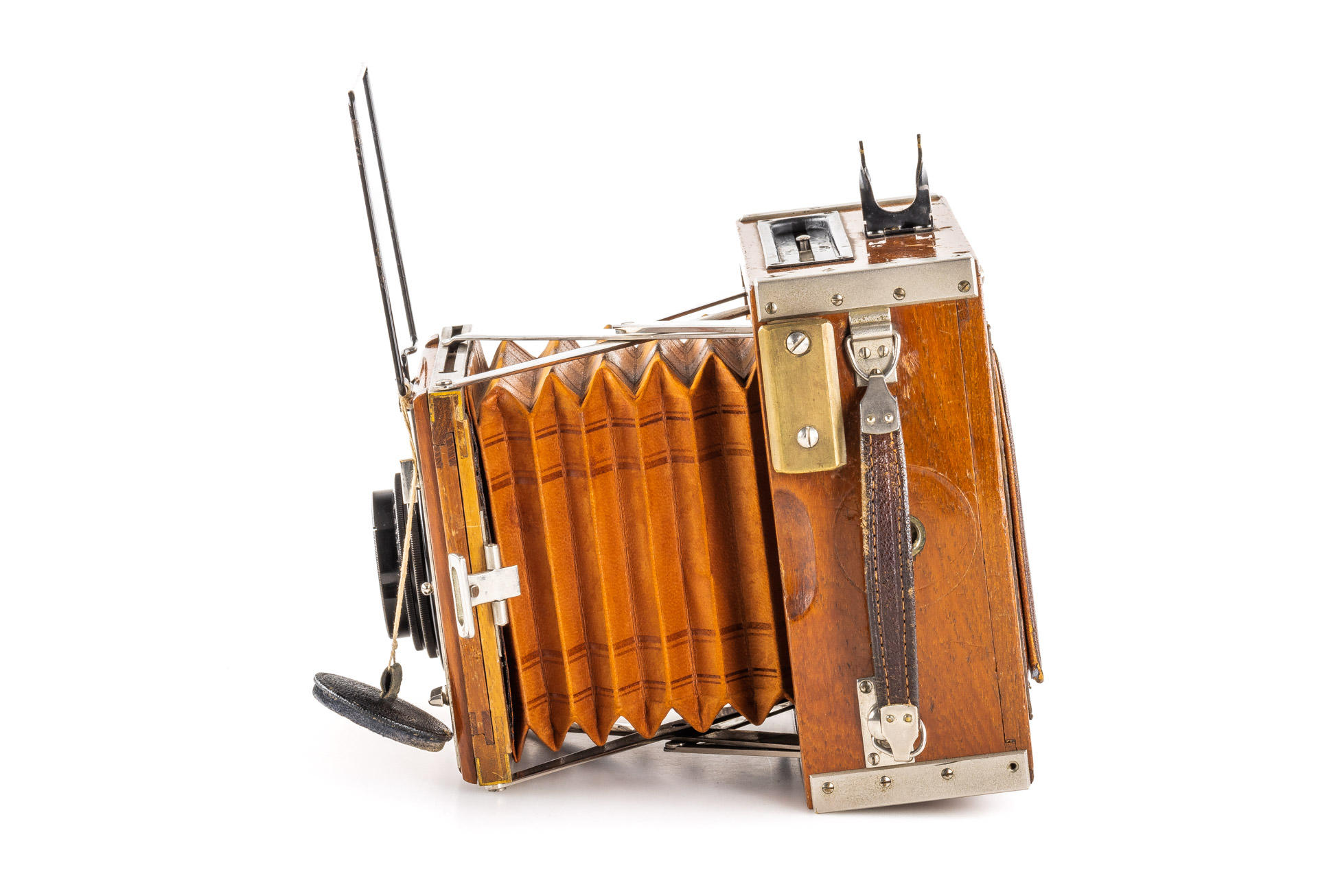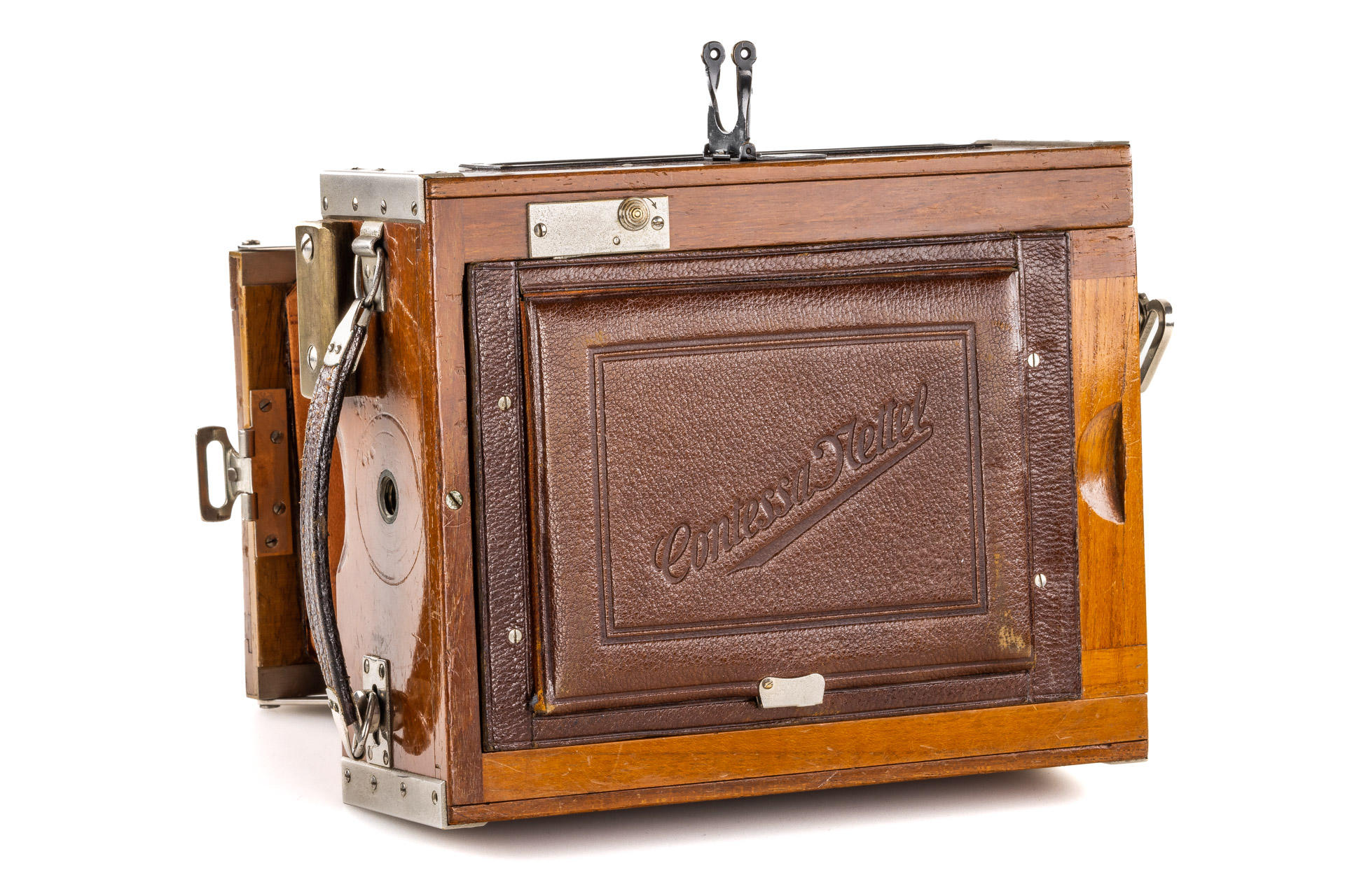 9x12cm Tropical version in very good and original condition (shutter needs attention), original brown bellows, with clean and clear Tessar 4.5/15cm no.505860 (front lens cap), with focusing back and 9x double film plate holders