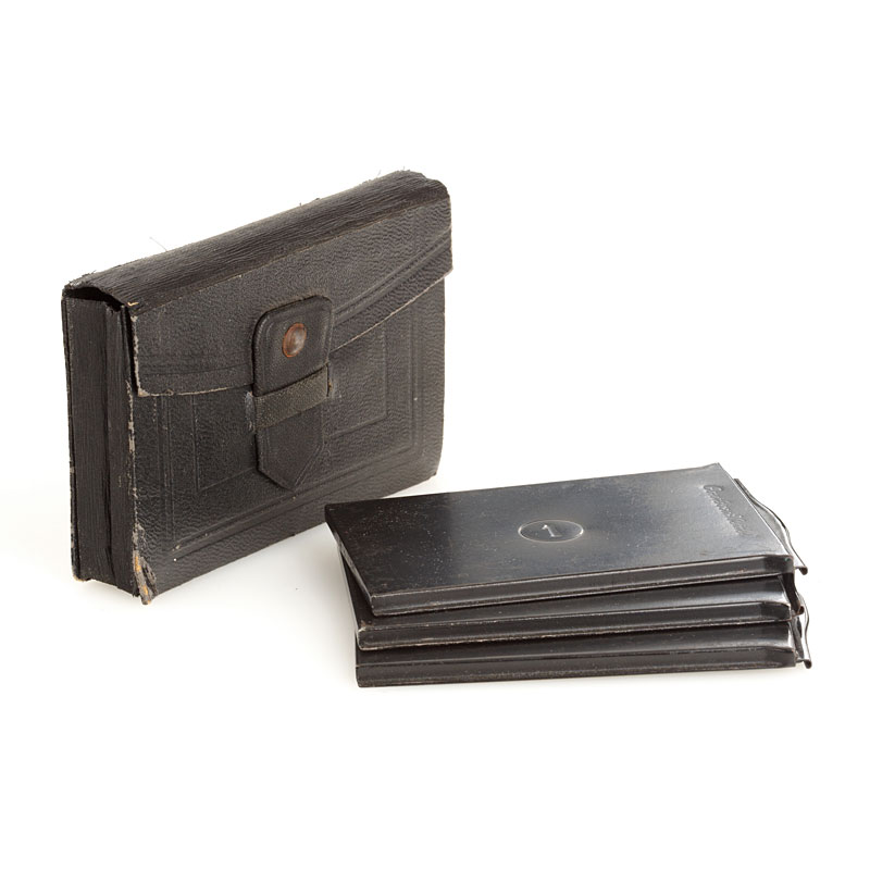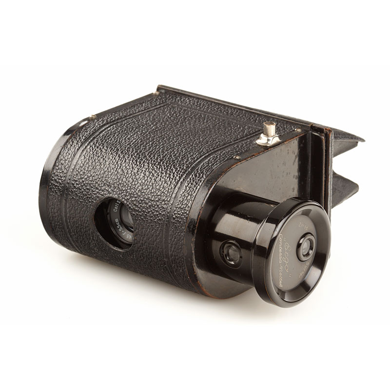 for 4.5x6cm plates, monocular-shaped detective camera, Tessar 4.5/5.5cm no.542521, with 3 plate film holders, back, case and strap - in very fine original condition