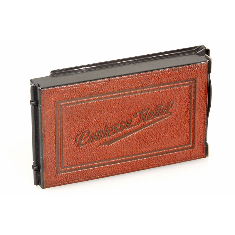 4.5x6cm, very rare camera in almost unused condition with brown leather bellows, nickel fittings, original ground-glass holder, Tessar 4.5/7.5cm no.696376 in Compur shutter, original film-pack holder and original Contessa-Nettel case - we have never seen this camera in better condition