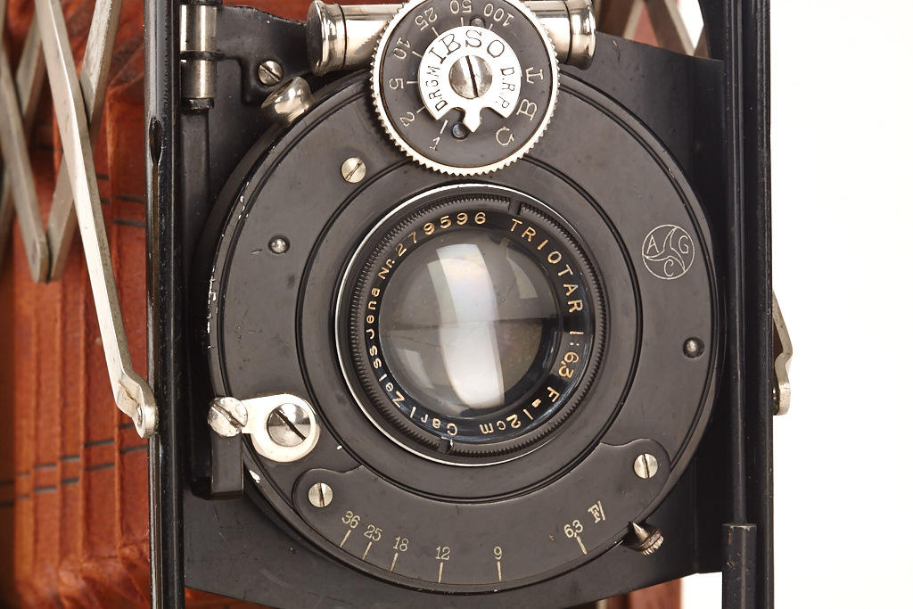 6.5x9cm, brown bellows, quite rare with Triotar 6.3/120mm no.279596 in good working Ibsor shutter