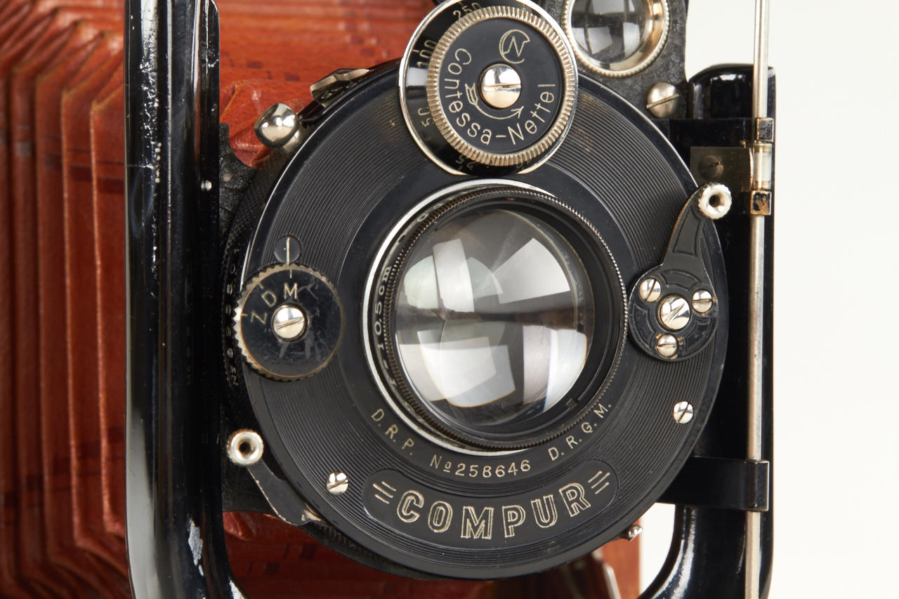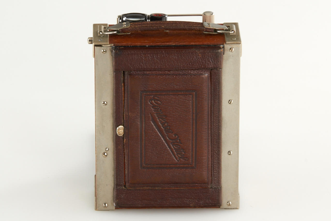 rare folding plate tropical camera for 6.5 x 9cm exposures in very good condition, original brown bellows, with Carl Zeiss Jena Tessar 4.5/10.5cm no.628873 in Compur shutter