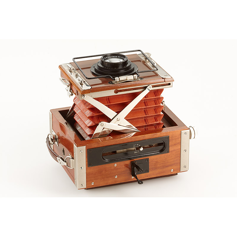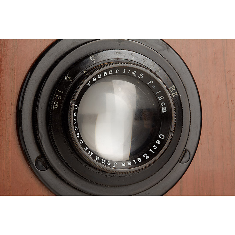 6.5x9cm (very rare in this format), excellent original condition, brown bellows, Tessar 4.5/12cm no.543060, focal plane shutter (not working), original film-pack holder, case