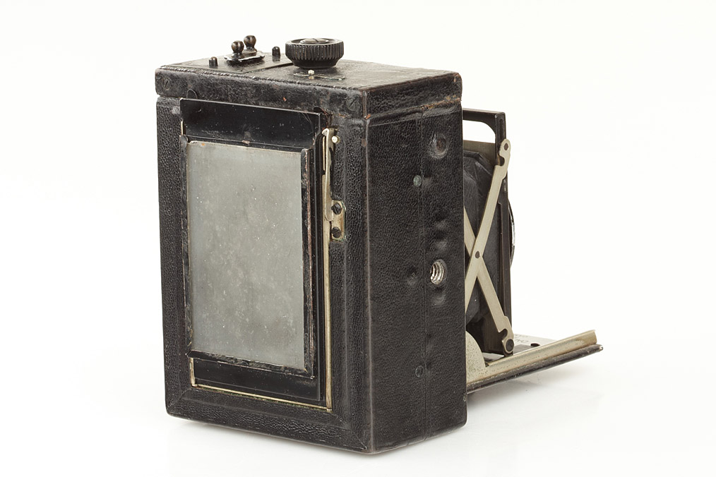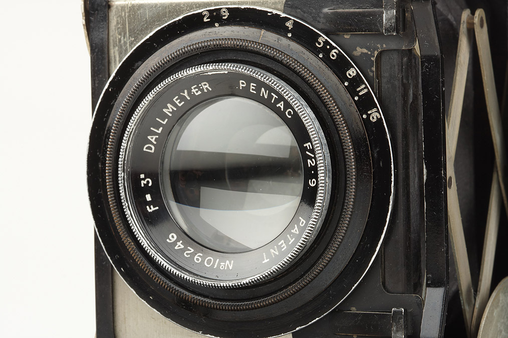 4.5x6cm, black-leather covered body, alloy and nickel fittings, fast Dallmeyer Pentac 2.9/3" no.109246, cloth focal-plane shutter (not working), rare camera made by N&G for Dallmeyer