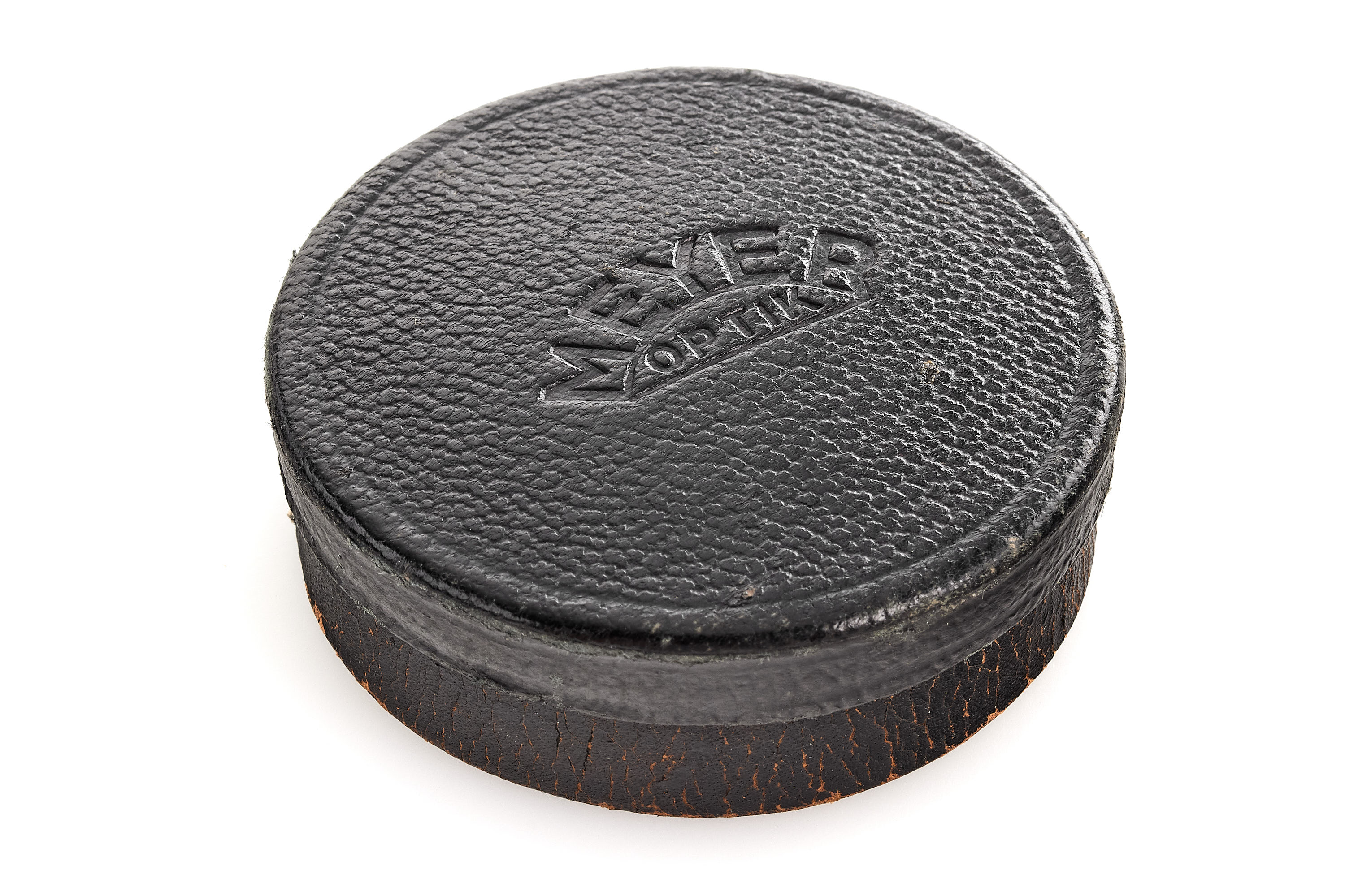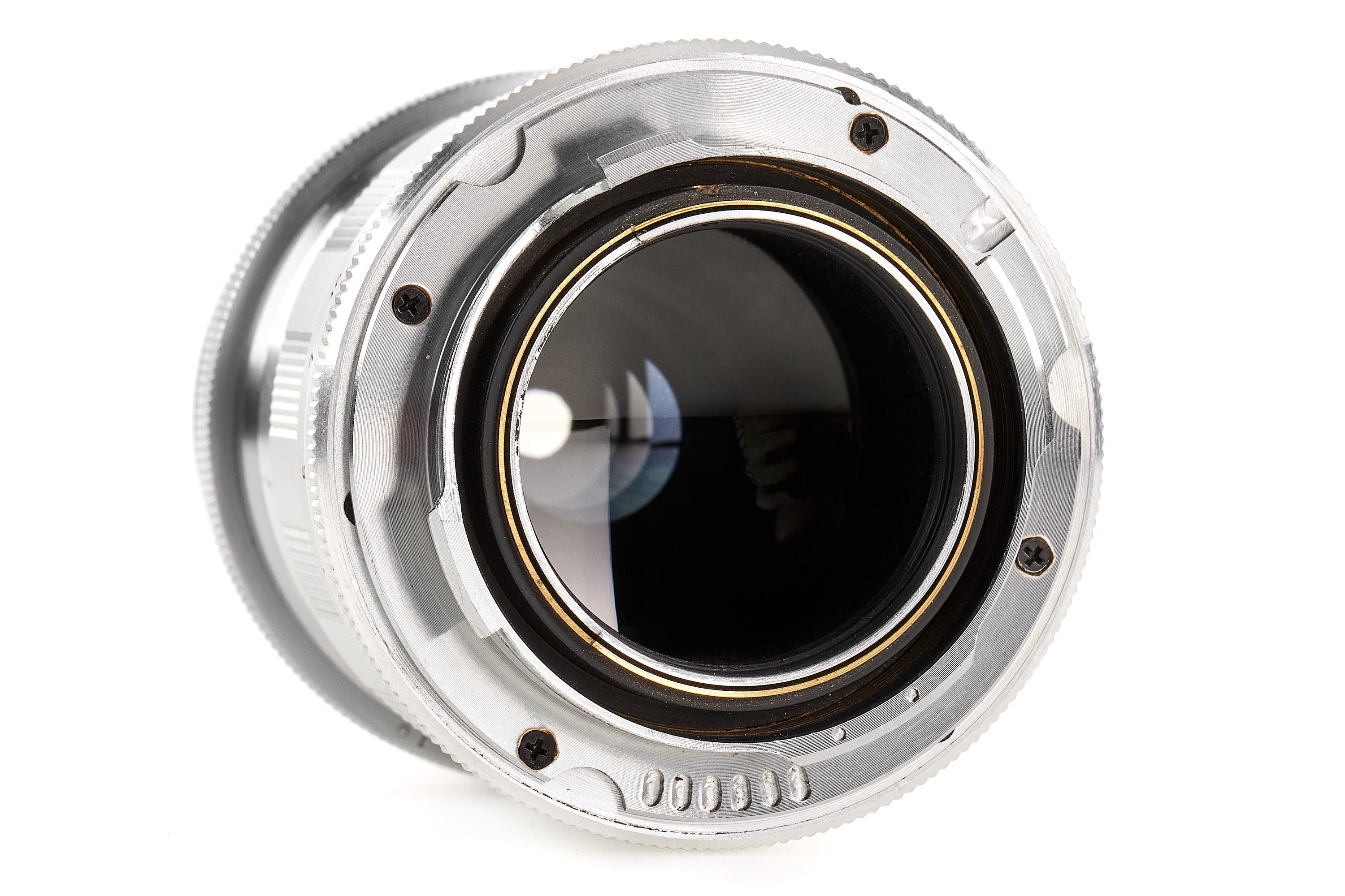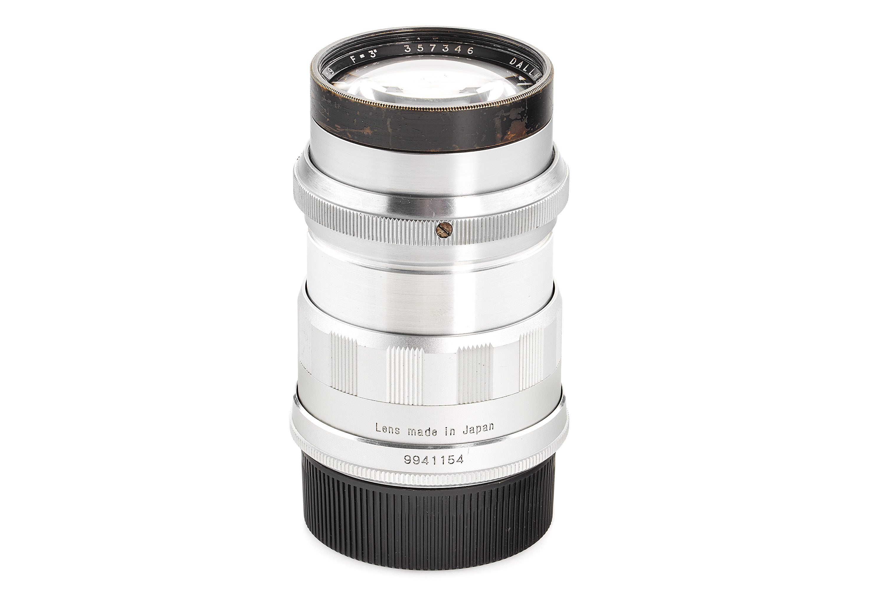 Sought-after fast lens (equ. 7.6cm) and covering medium format, known for its beautiful render and bokeh, here adapted to Leica M, in good condition, optics showing some light flakes and a few cleaning marks, light dent on the filter mount, with rear cap and leather front cap.