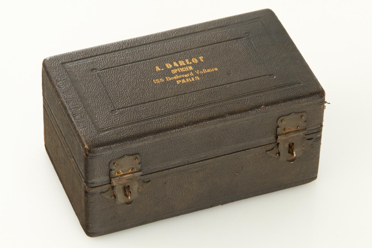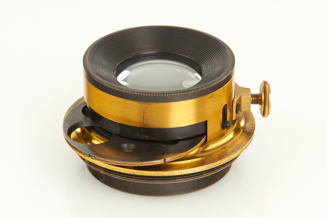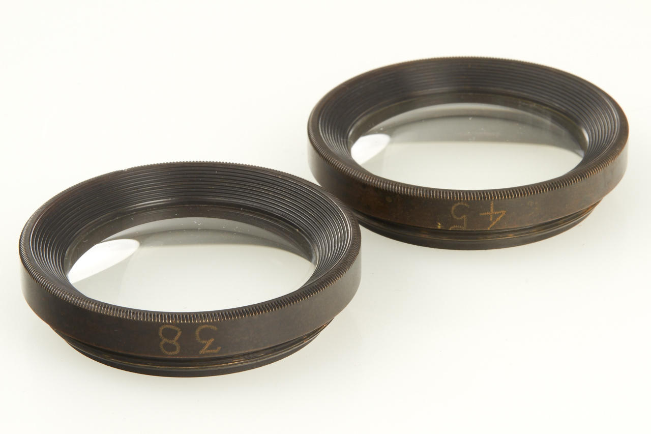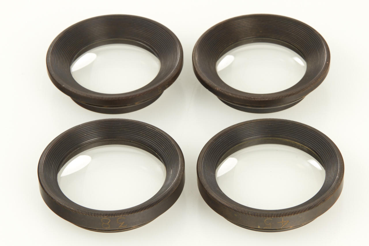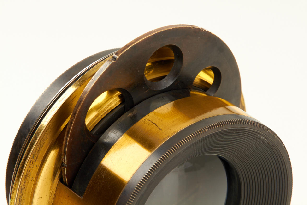 casket lens set including a lens body with rotating aperture disc and set of 6 lenses with various focal lengths: 17cm, 25cm, 33cm, 38cm and 2x 45cm, inclusive matching Darlot padded case