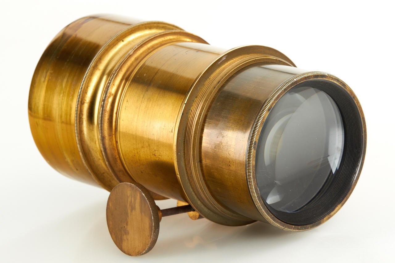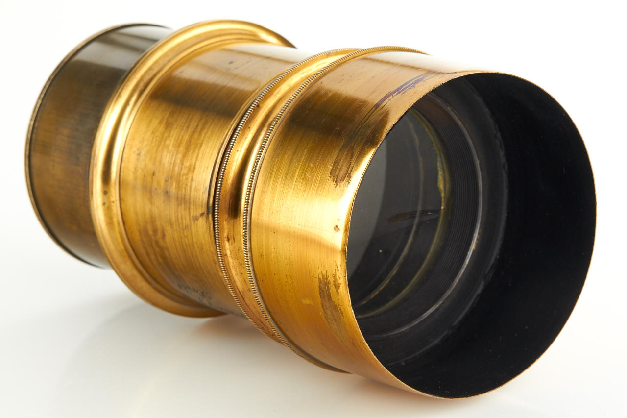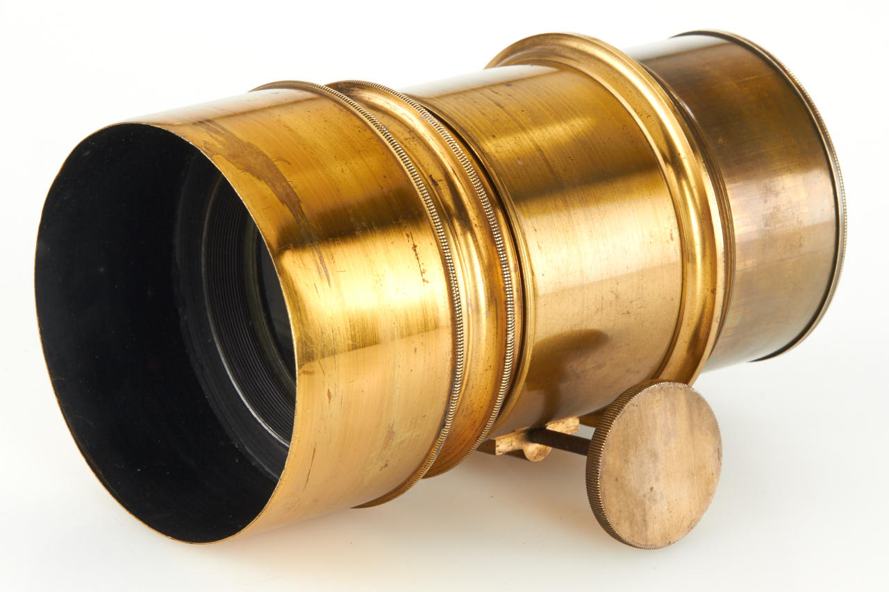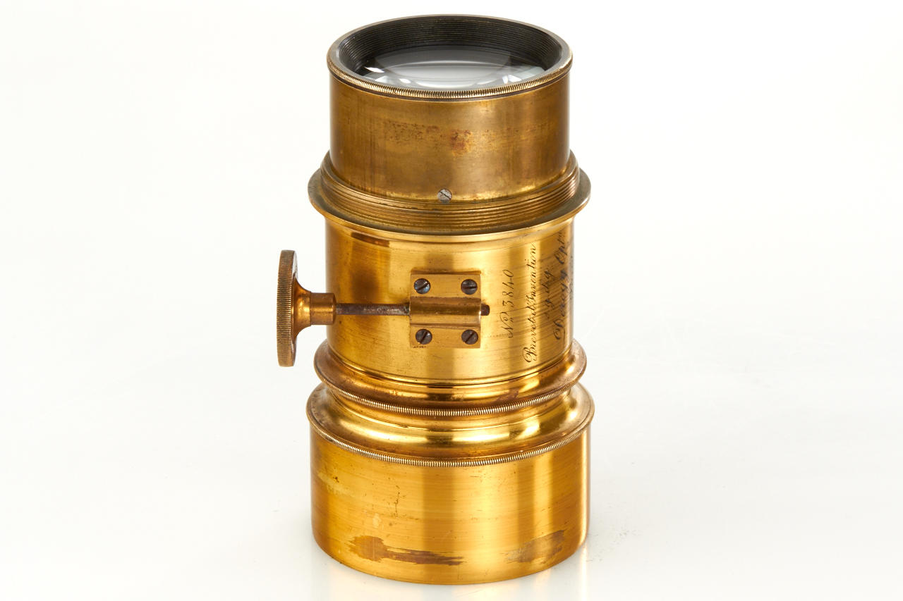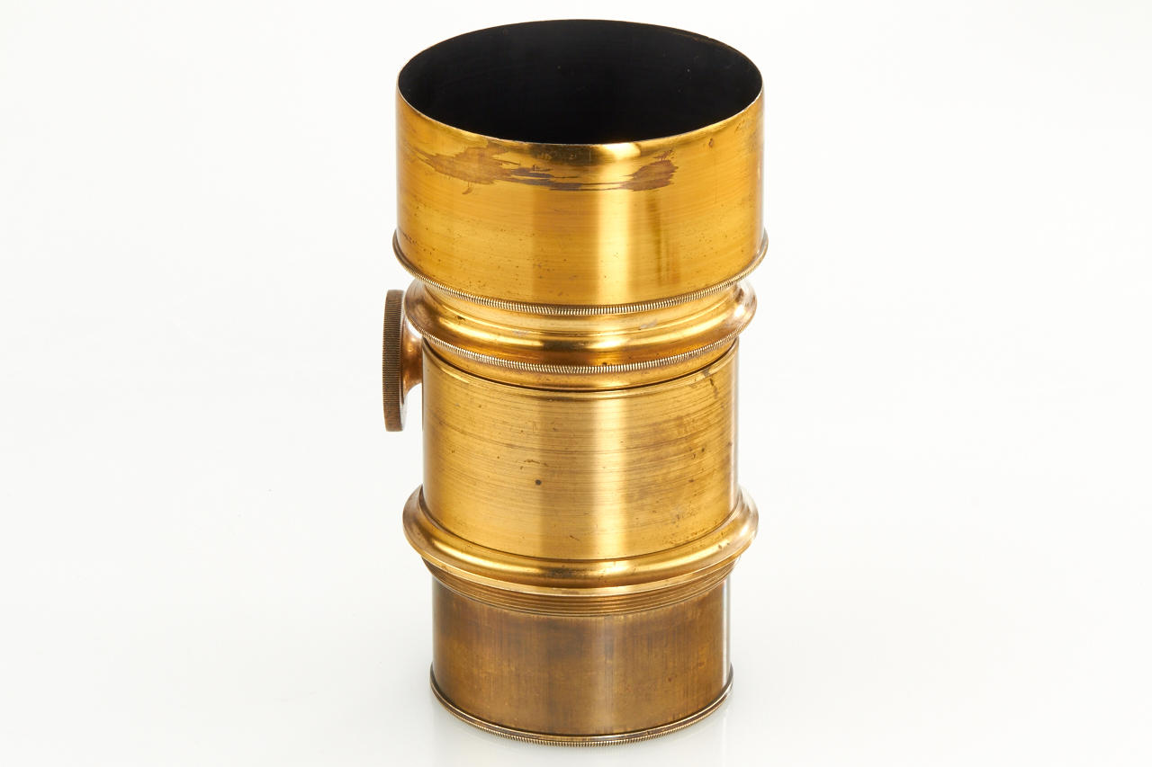early convertible lens in good original condition, essentially a Petzval construction with added one intermediate lens element, good optics with minimal edge separation in front element, inclusive brass front cap