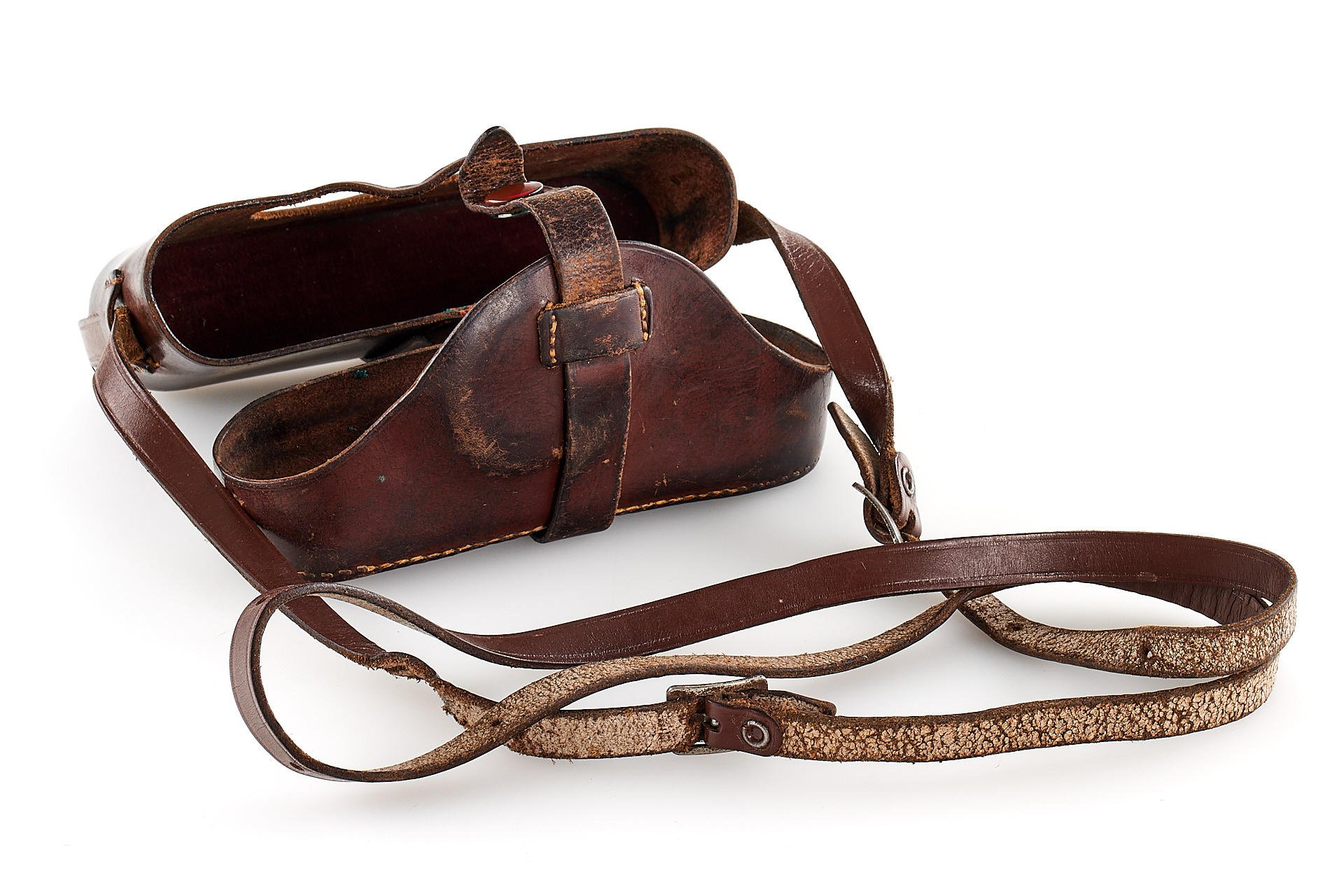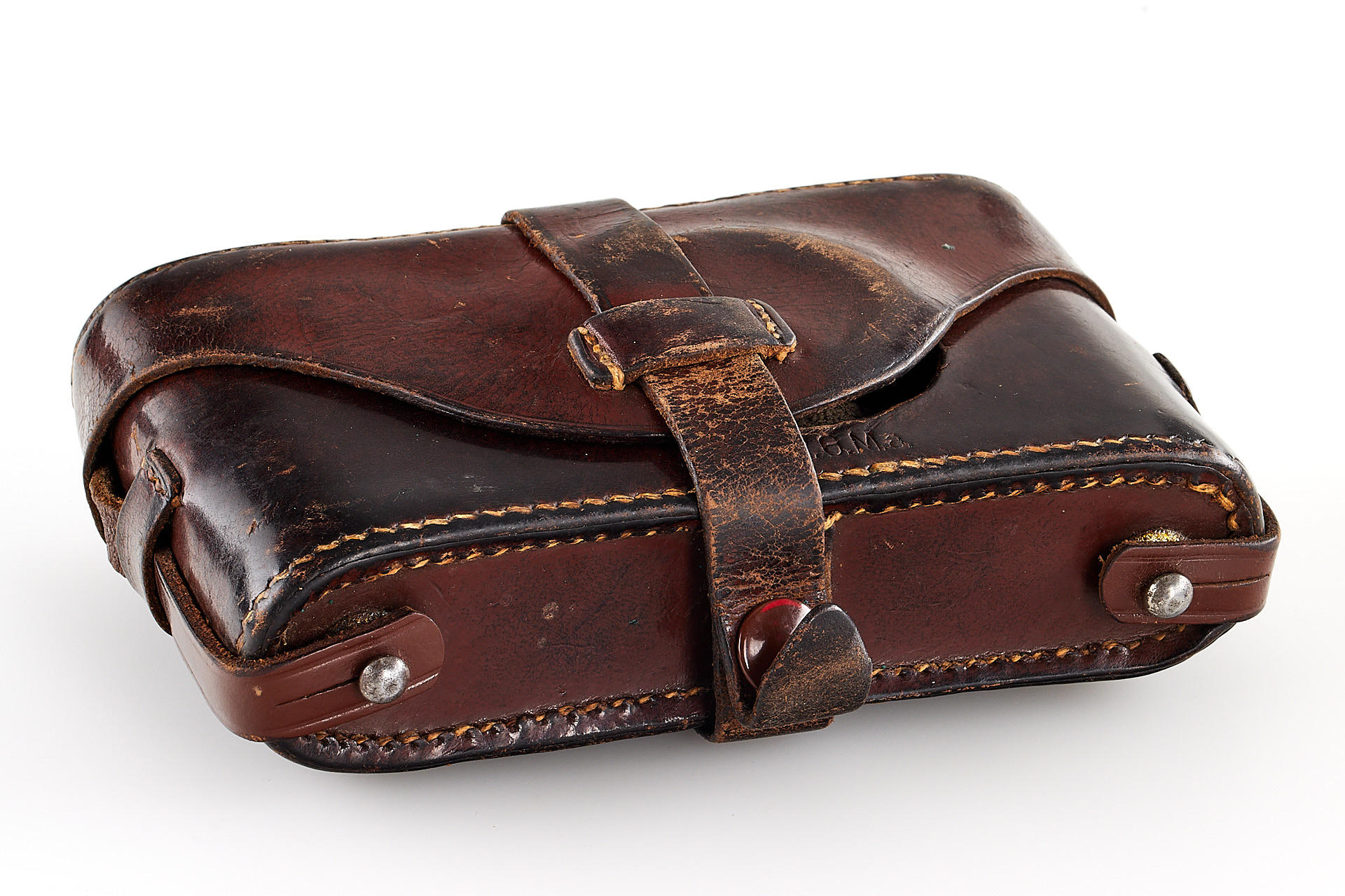 uncommon version of the very rare ever-ready case for Leica I Mod.A produced by Wilhelm Dielemann in Frankfurt, in very good condition, with strap