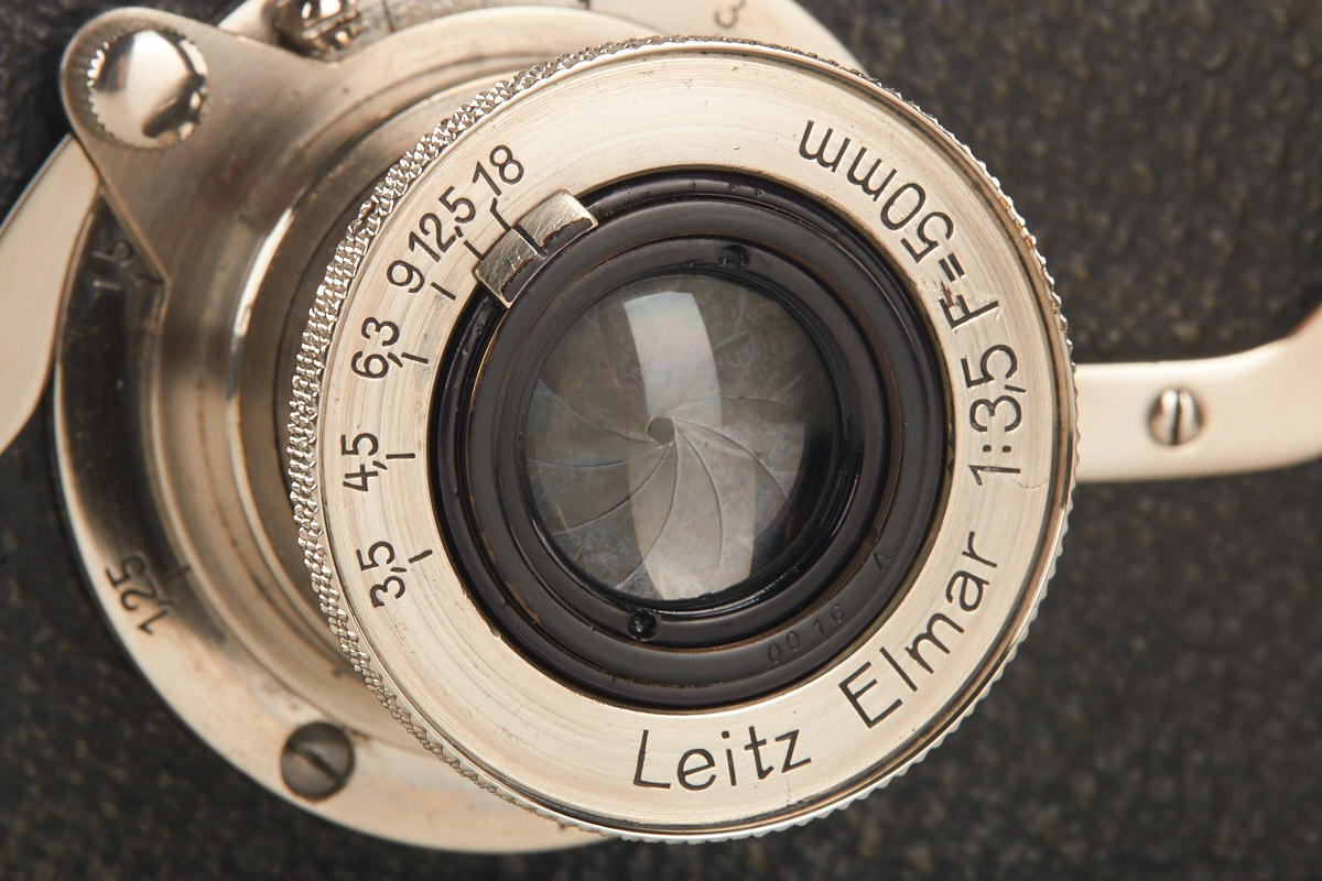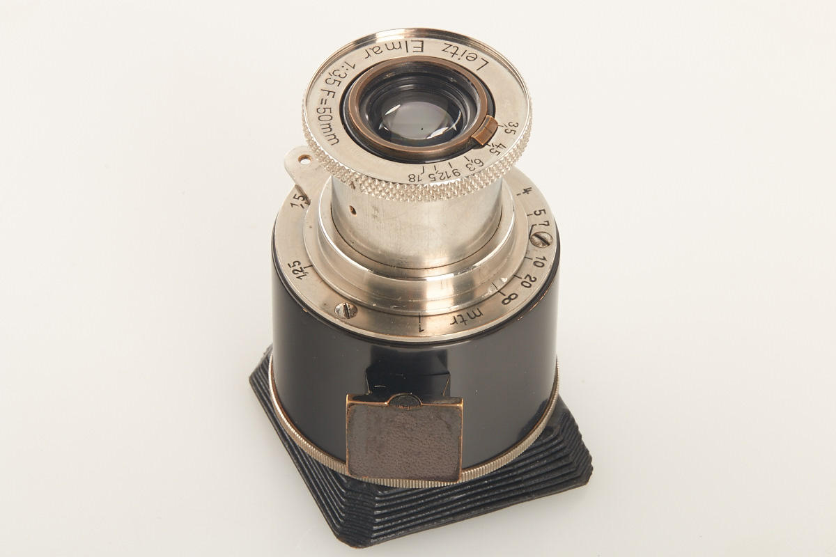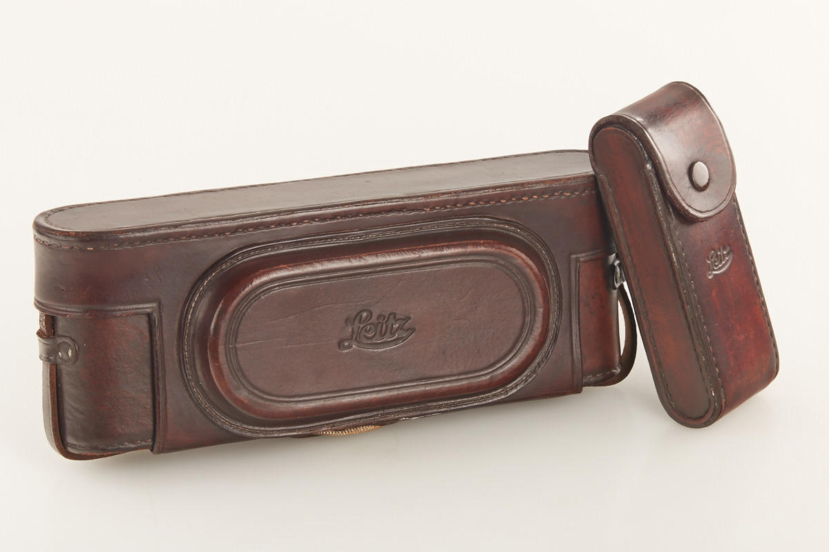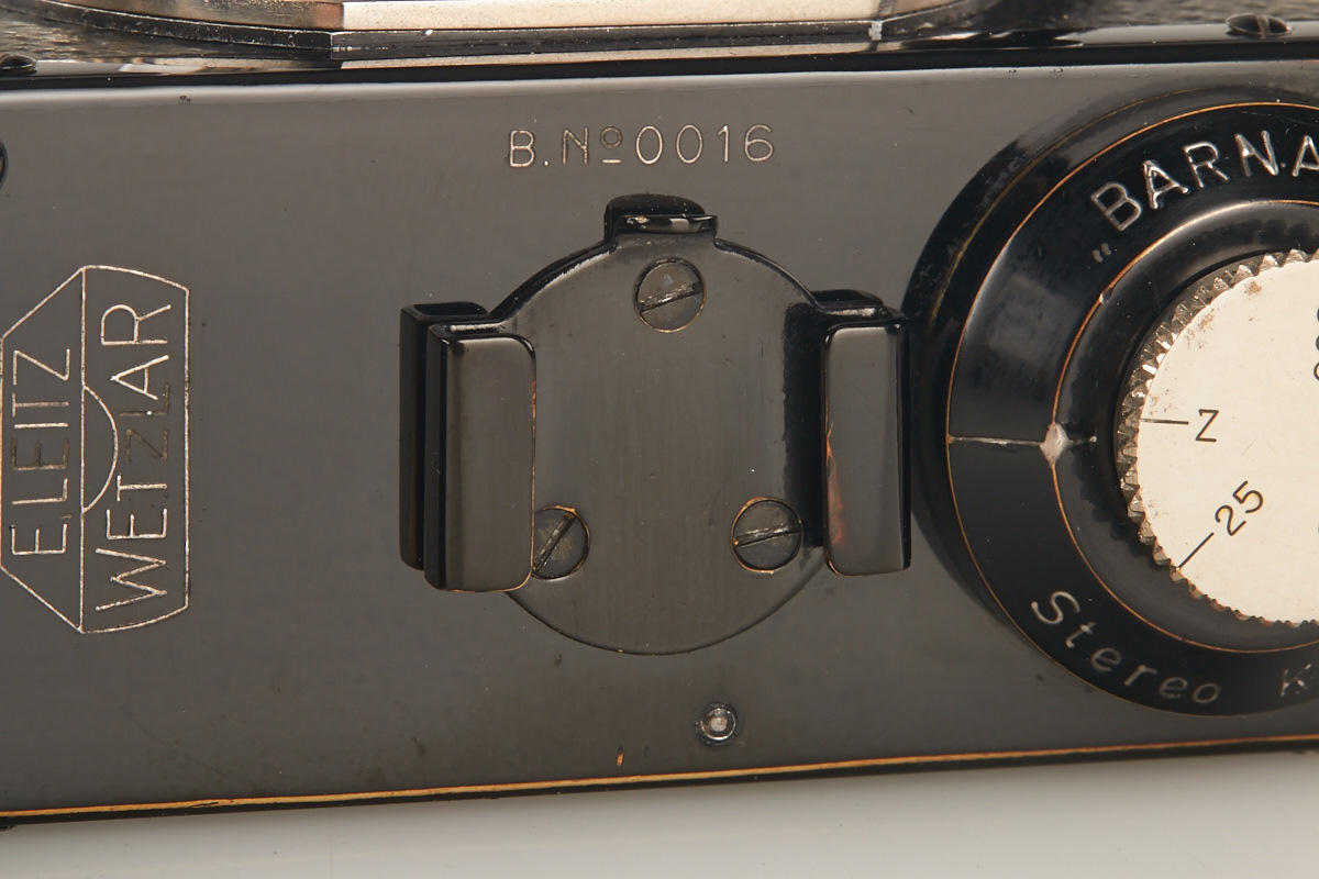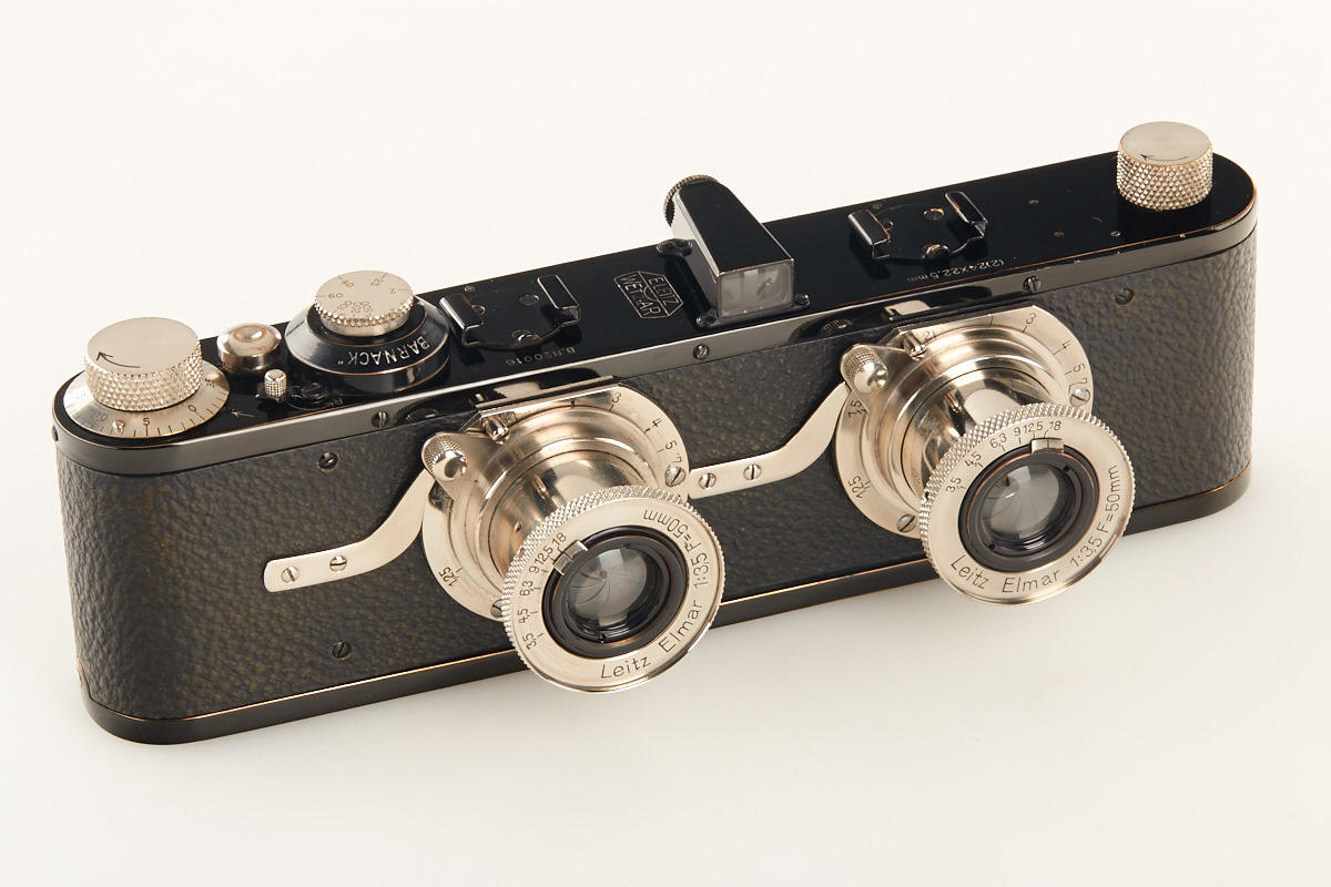 beautifully made replica made with original factory parts (on special request made by Leitz), top plate engraved '(2)24X22.5mm' and 'B.No0016', on shutter speed dial engraved ' "BARNACK" Stereo Kamera' and 'Germany', with two fixed nickel Elmar 3.5/50mm lenses numbered 00167A & 00167B, nickel caps, beautiful leather case stamped 'E. Leitz Wetzlar' in condenser logo at the back, FODUA rangefinder in Feet engraved 'Germany' (case), FINAL cable release engraved 'E. Leitz Wetzlar' in condenser logo, viewfinder attachment with focusing Elmar 3.5/50mm and focusing screen, including a roll of film exposed with this camera