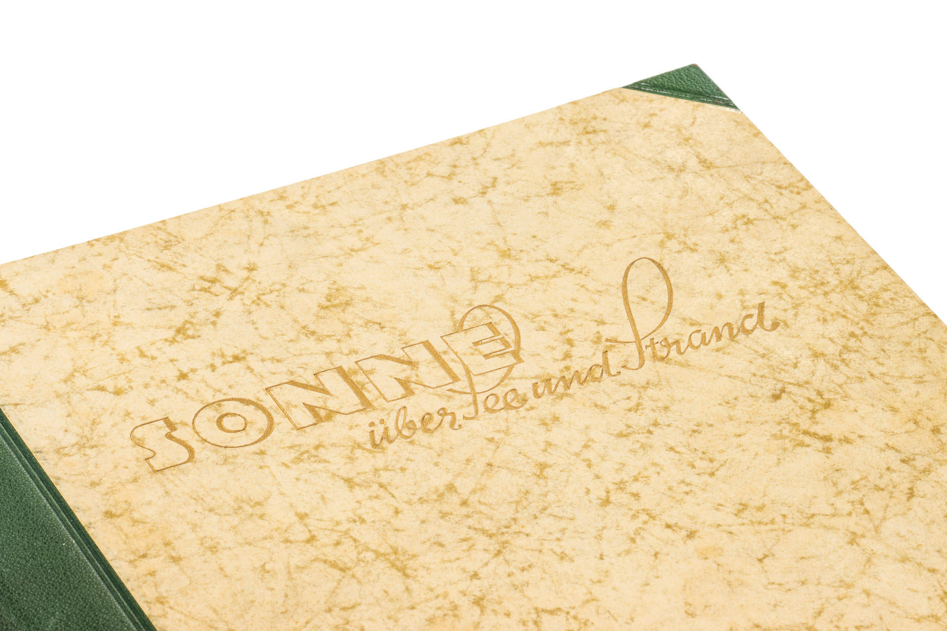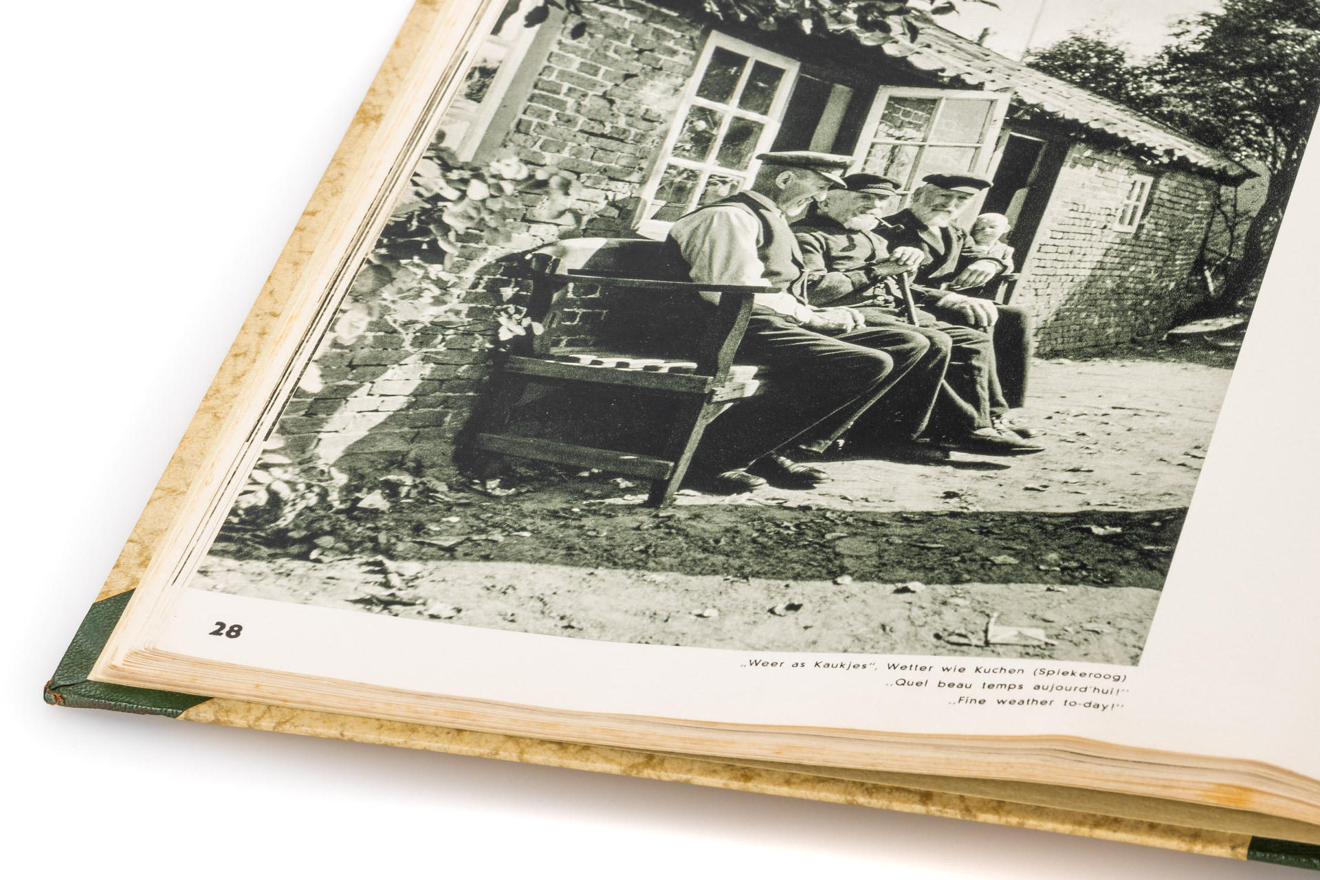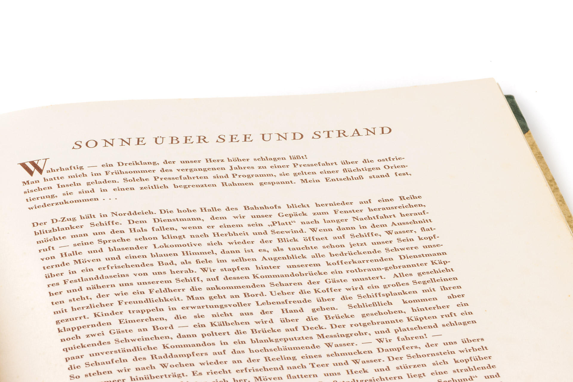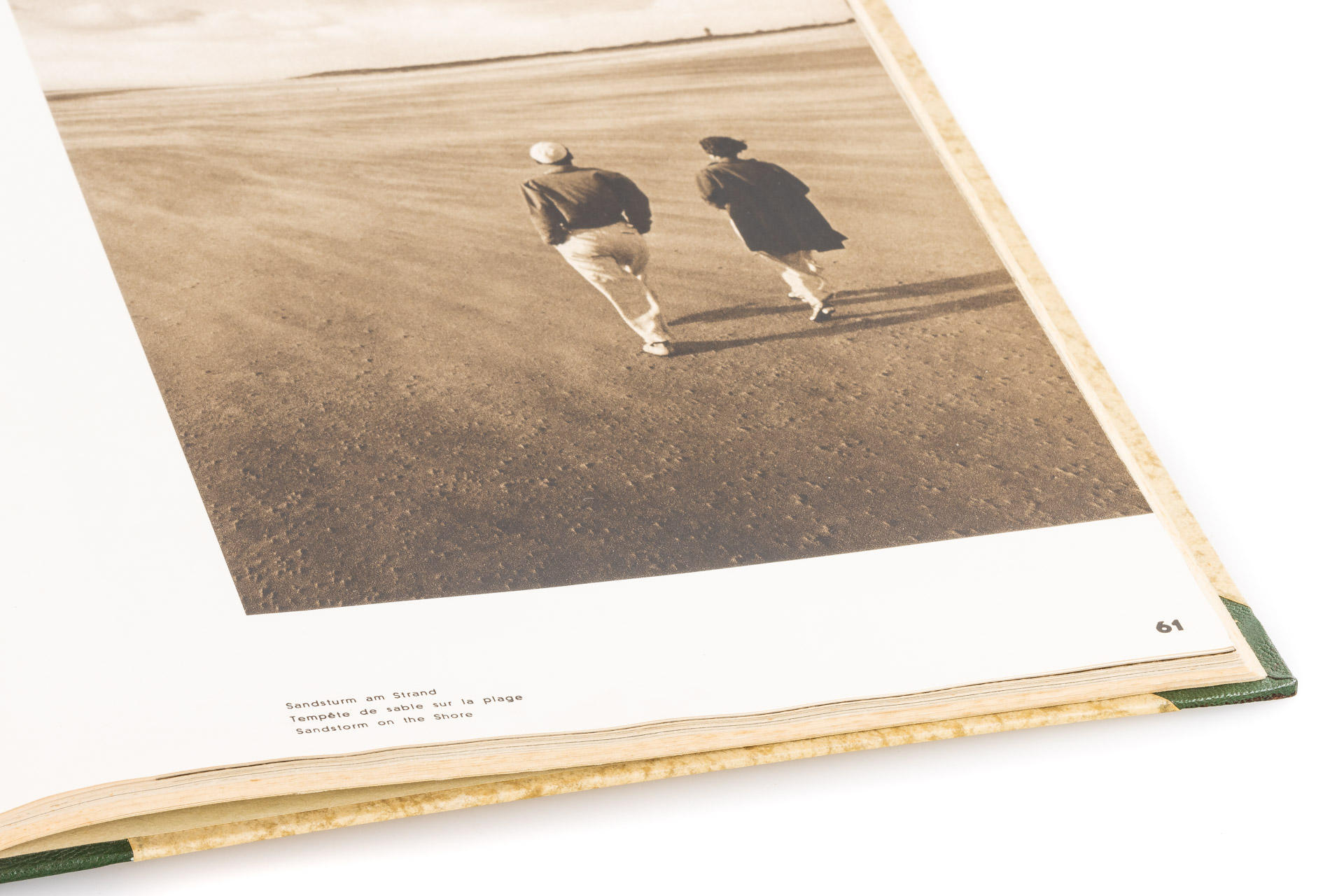 very interesting numbered edition (Sun over sea and beach) signed by the author Dr. Paul Wolff (1887-1951), German photographer considered as a pioneer of Leica photography, 143 pages (100 b/w pictures taken with a Leica), 24 x 27.5 cm, in near mint condition, leather side cover a bit worn, with original cardboard protection