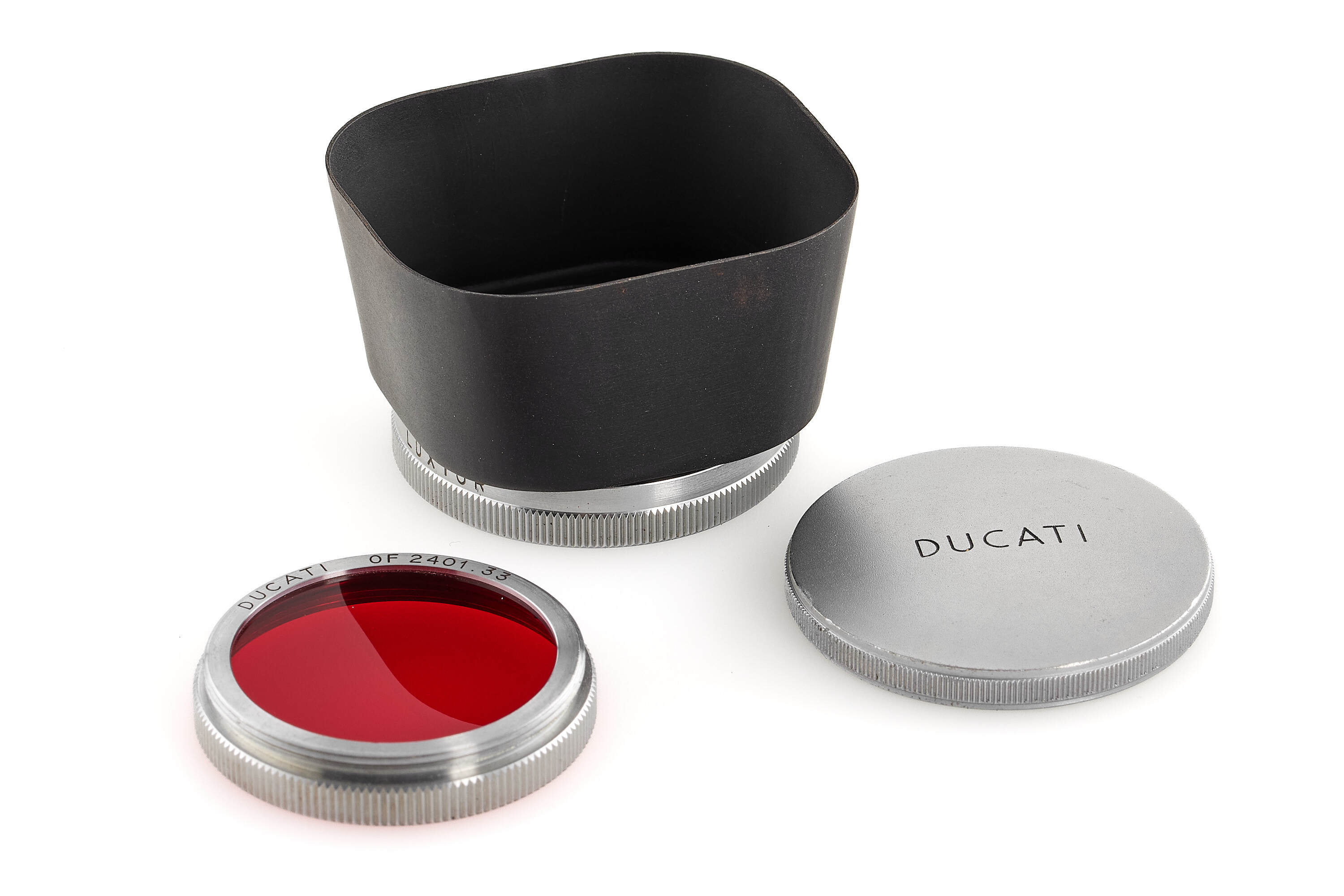 The rarest and most desirable Ducati lens - from the second production batch. In beautiful condition, with original caps, hood, red filter, boxes for the lens and hood.
