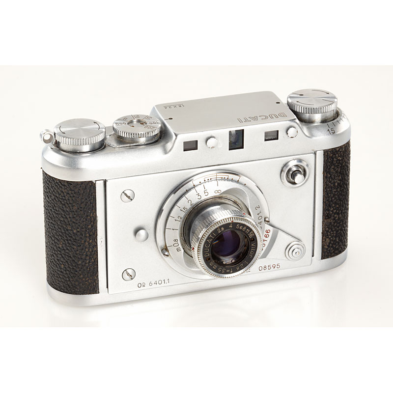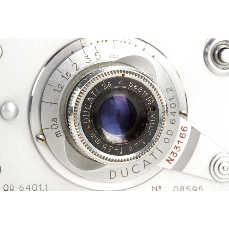 type OR 6401.1 in very fine cosmetic condition (slow speeds sticky), with Vitor 2.8/35mm no.33166, cap, everready case, spool, orange filter OF 2401.4 in keeper, including rare Lator 2.8/60mm no.34560 focusing lens in direct mount, maker's box