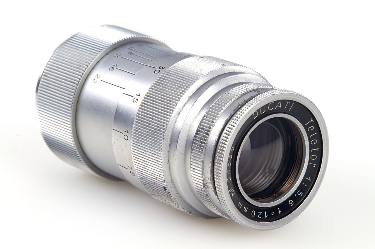 rare tele lens for Ducati in good condition, slim version OD 6408.2 with black serial number, leather case