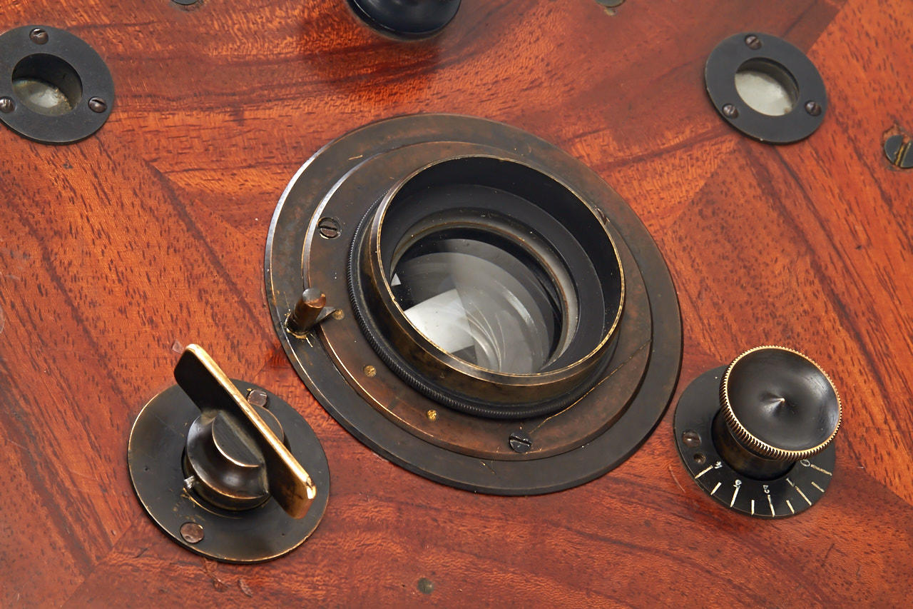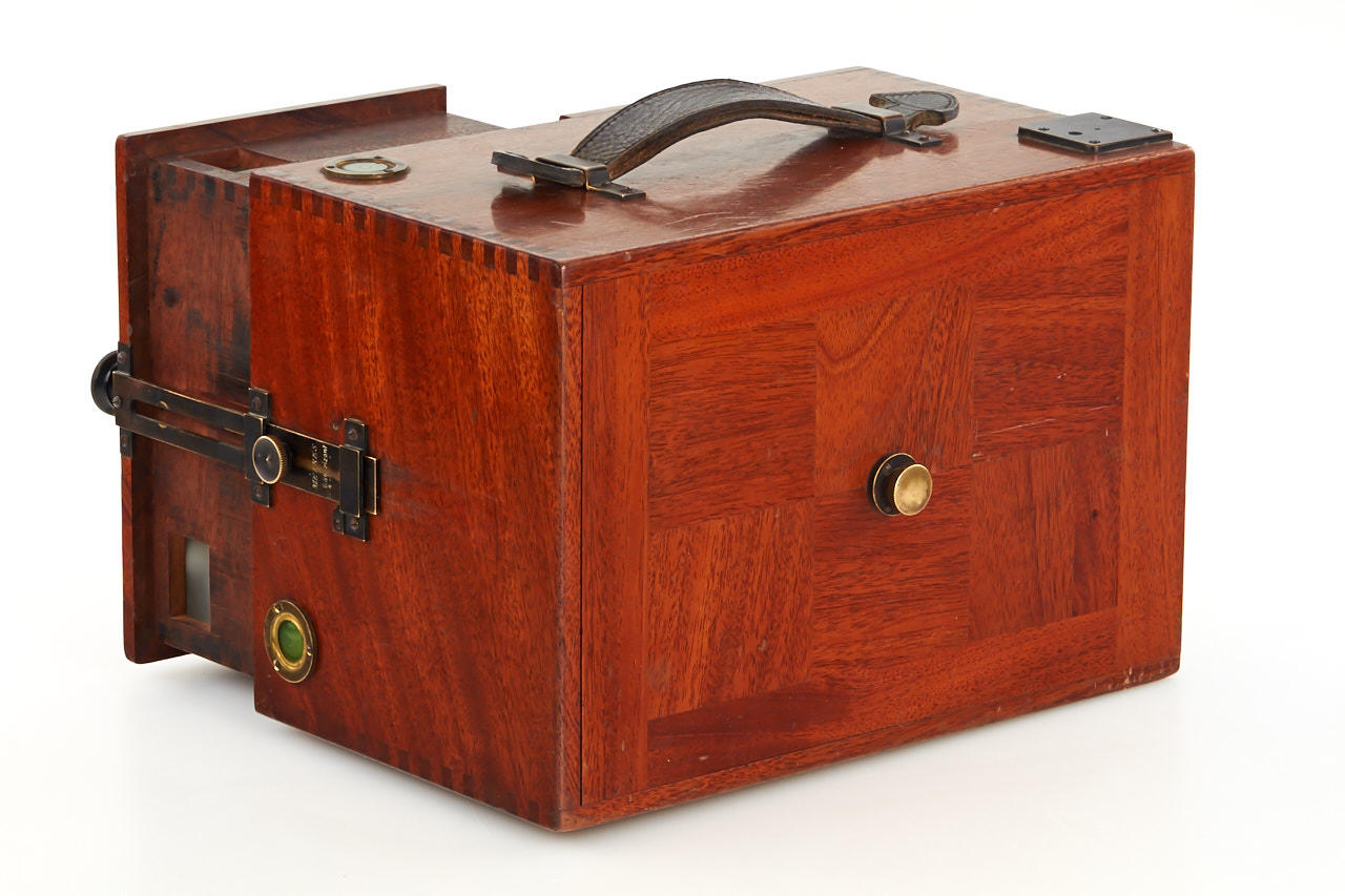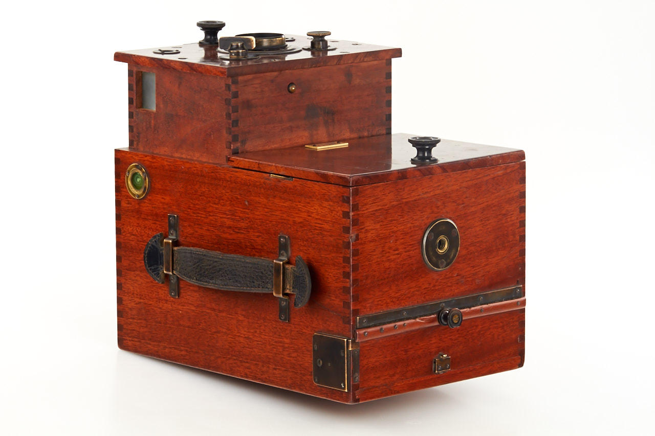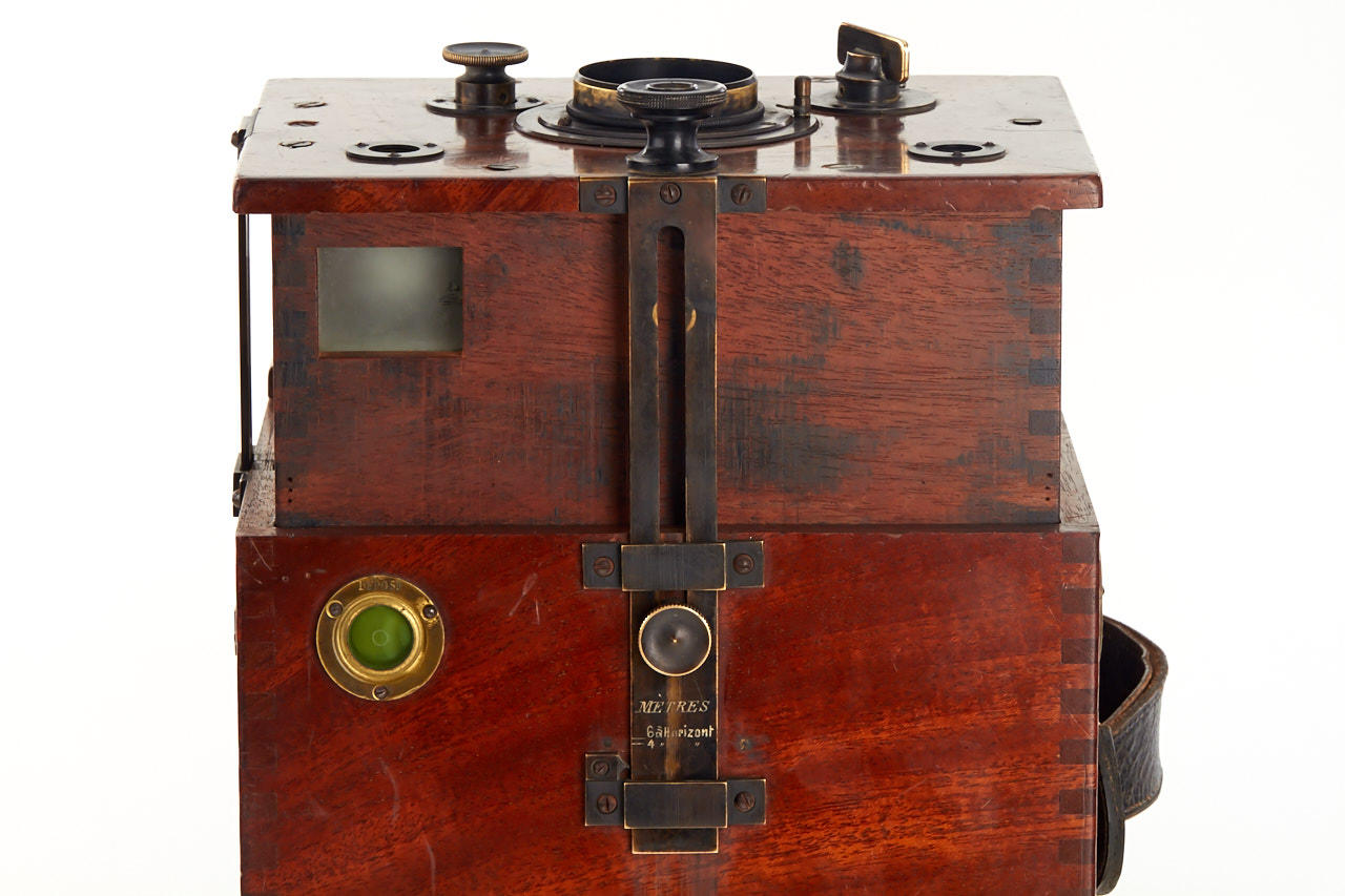 very rare tropical version of the Suter's detective camera, early 9x12 cm version with two reflex viewfinders, unmarked lens, working shutter, in very good condition
