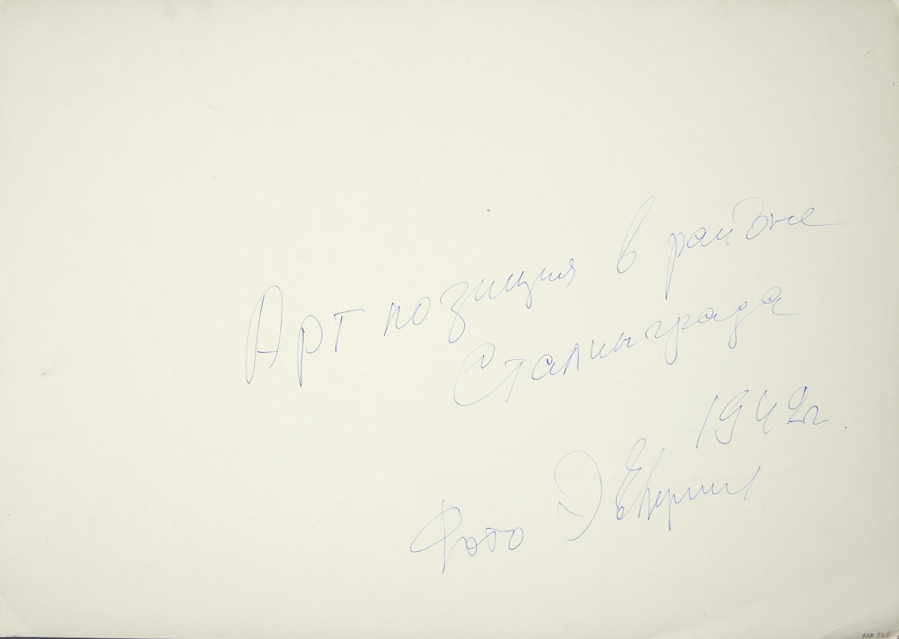 Vintage silver print 28,2 x 39,9 cm Annotated “Military Position near Stalingrad 1942. Photo by E. Evzerikhin” (Cyrillic) in an unidentified hand in ink on the reverse PROVENANCE Howard Schickler Fine Art, New York