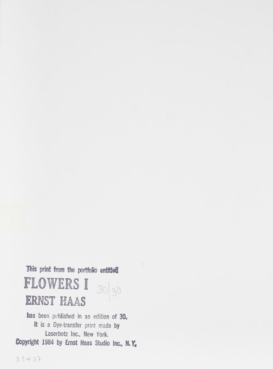 Dye transfer print, Vintage, mounted on original cardboard 33,6 x 49 cm Signed and numbered “30/30” by the photographer in pencil on the mount, photographer's New York studio and edition stamp on the reverse, print comes from the ‘Flowers I’ portfolio, edition no. 30/30