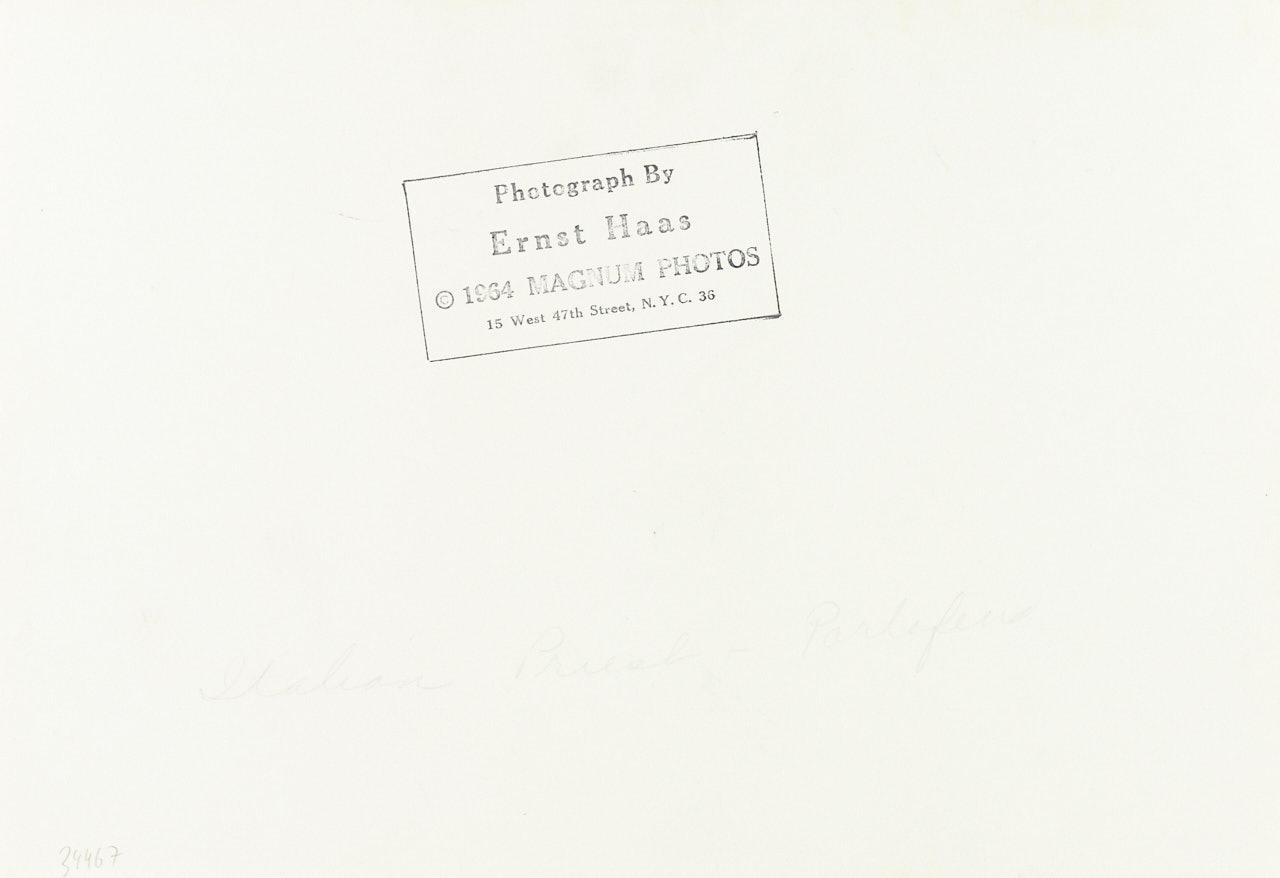 Gelatin silver print, printed in 1964 16,4 x 24,1 cm Photographer's agency stamp (with print date 1964) and various handwritten notations in unidentified hands in pencil on the reverse LITERATURE Alexander Haas (ed.), Ernst Haas in Black and White, New York 1992, cover.