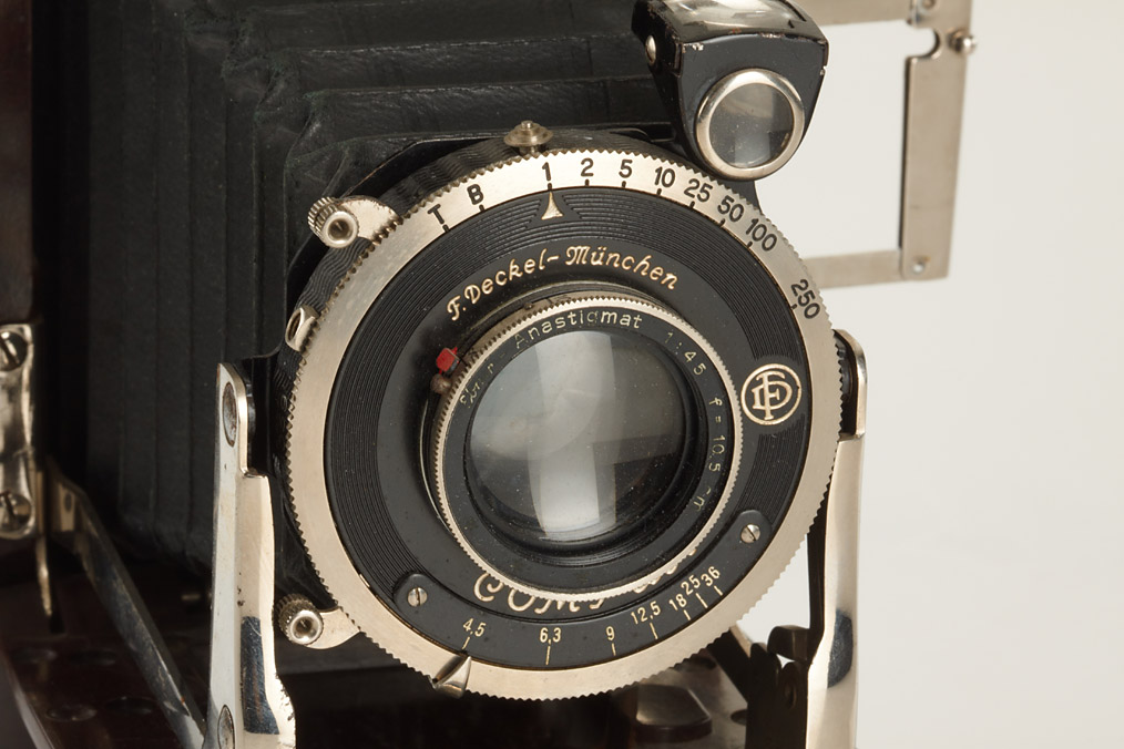 6x9cm, brown bakelite body with Ebner-Anastigmat 4.5/10.5cm in Compur shutter, in very good condition without chips or cracks