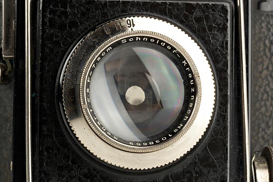 very rare German 6x6cm SLR camera, first model with rigid Xenar 2.8/7.5cm, focal plane shutter for 1/20-1/1000 sec.
