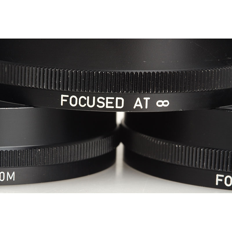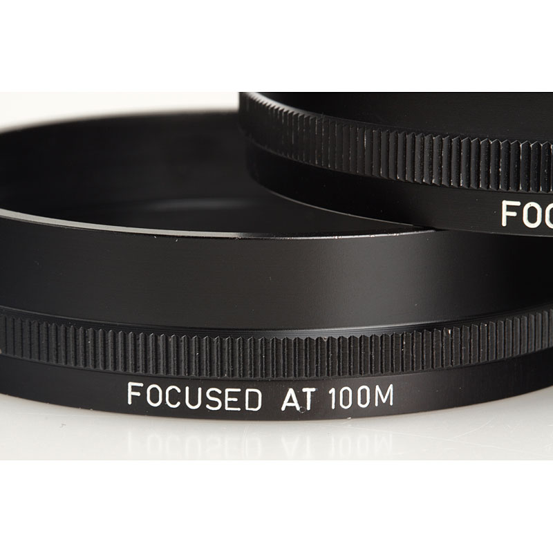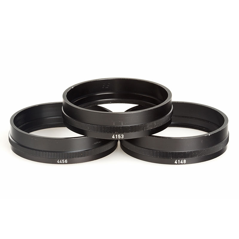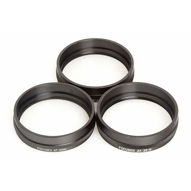 original extension ring set for Elcan 1/90mm to fix focus at 20m (4148), 100m (4456) and infinity (4153), all engraved 'FOCUSED AT ...'