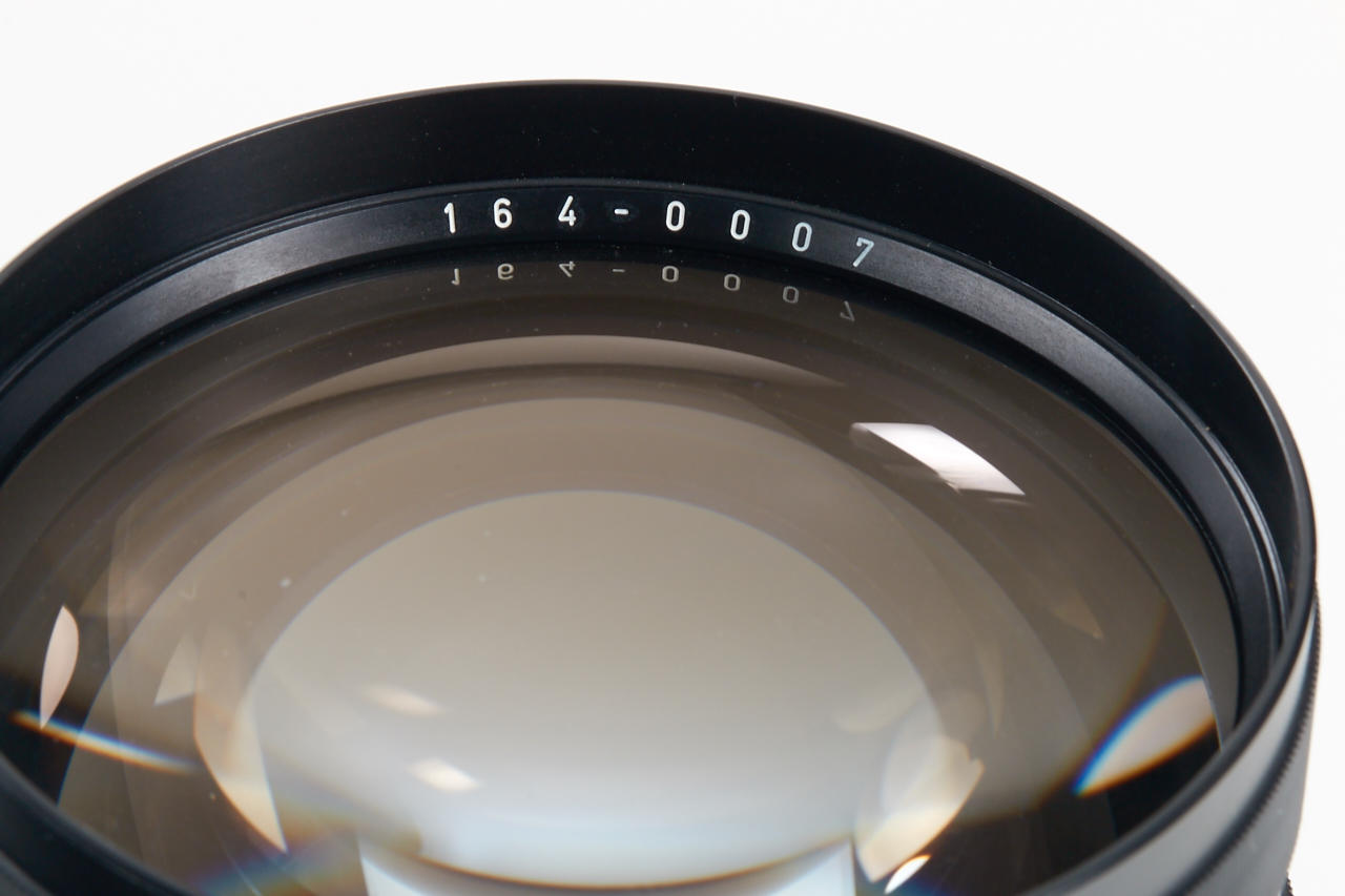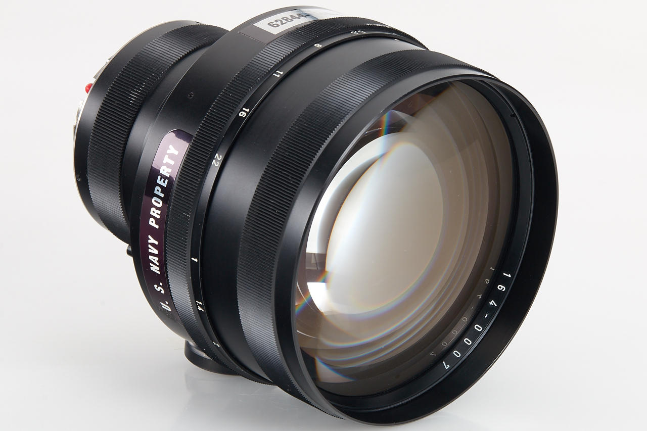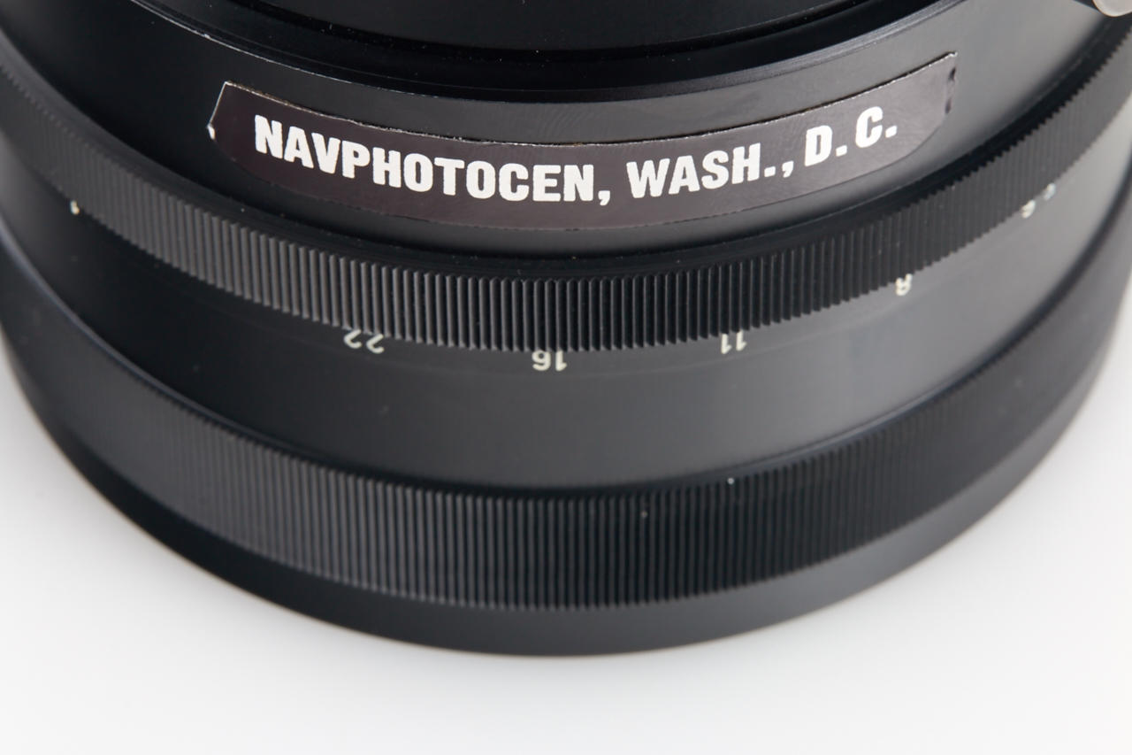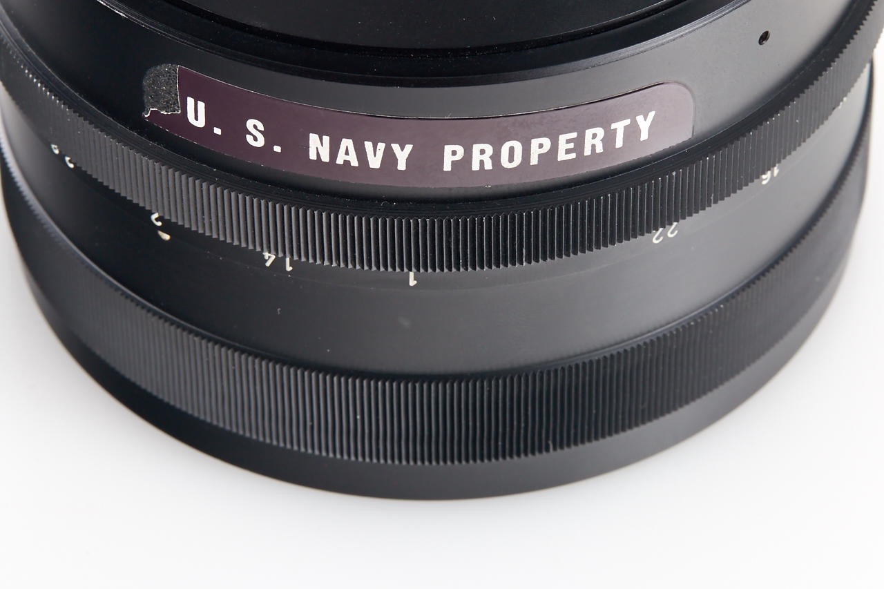 extremely rare lens (one of only 10 produced) made for US-Navy, with 3 distance rings (for 100m, 50m and 20m), perfect clean optics, original front cap, with stickers 'U.S.NAVY PROPERTY' + 'NAVPHOTOCEN, WASH.,D.C.' and a sticker with contract number '62844-101021'
