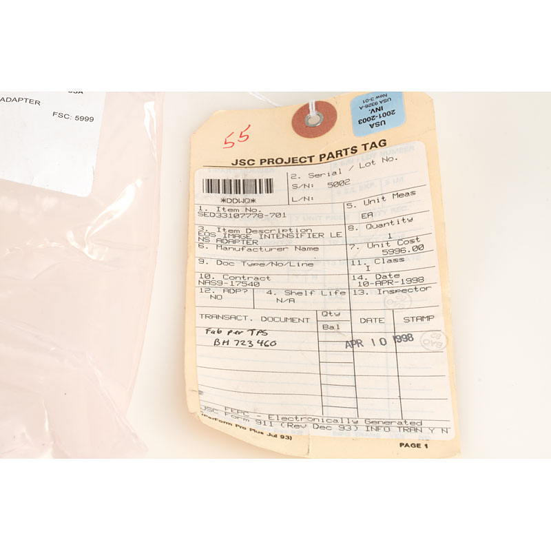 for Canon EOS, with NASA property and inventory stickers with typical NASA numbers: SED33107778-701 S/N5002 w/o CIU and SED33107778-301 S/N5002 w/ CIU, caps and NASA tag
