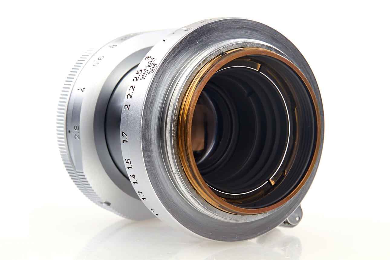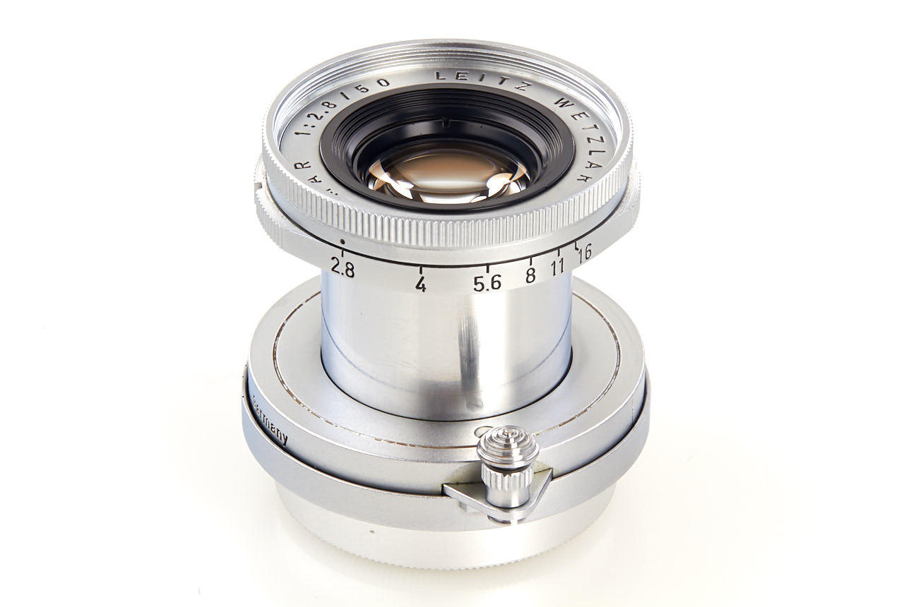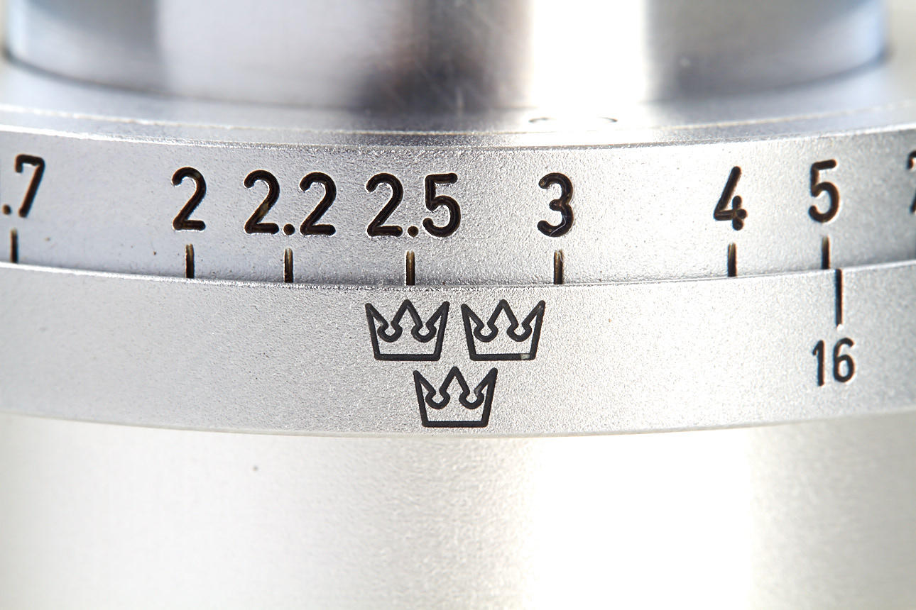 mint screw mount Elmar with perfect lenses, engraved with 'Three Crowns', caps