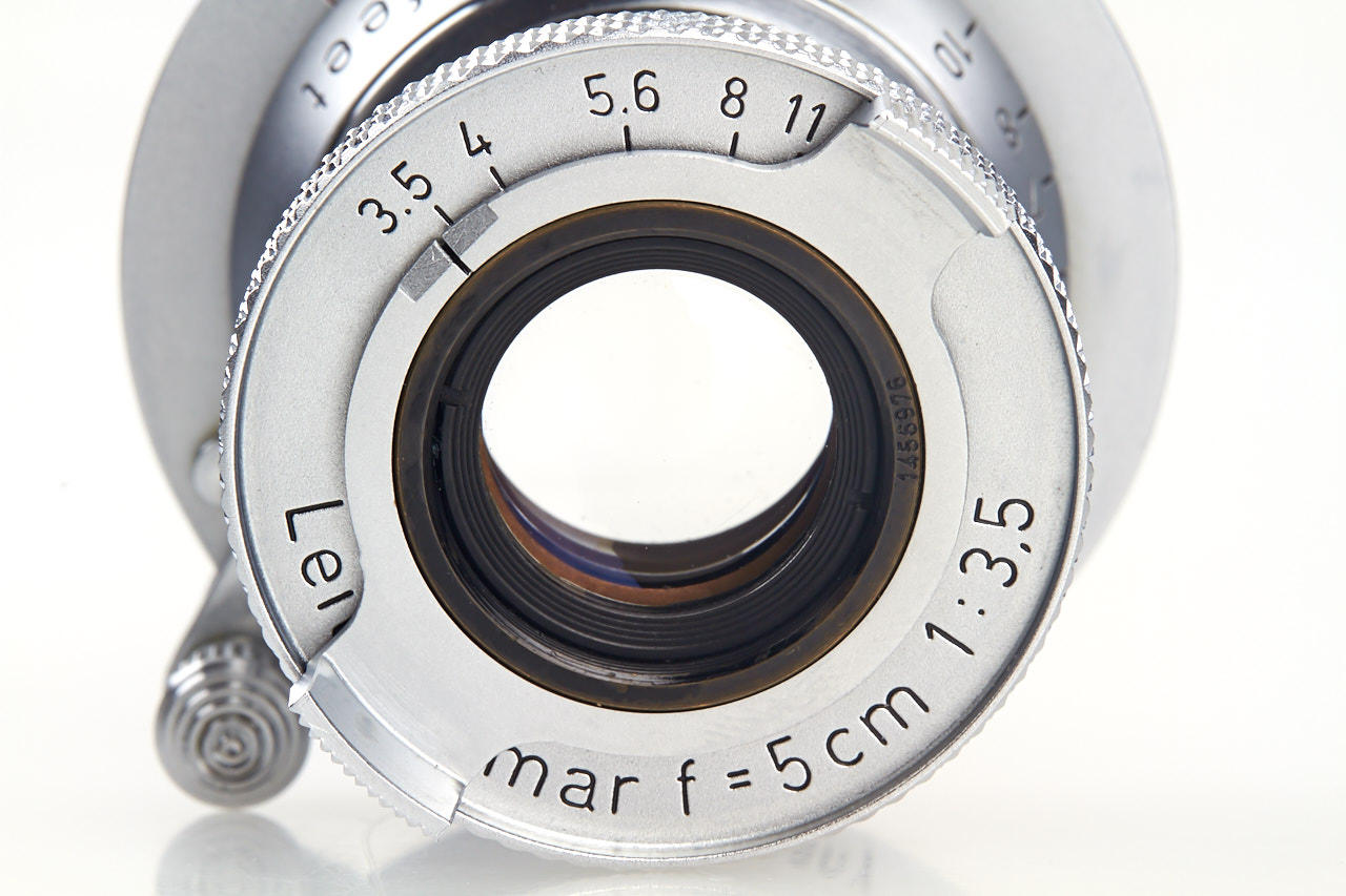 almost mint red scale Elmar with experimental aperture control, from the very last batch of Elmar 3.5/5cm lenses