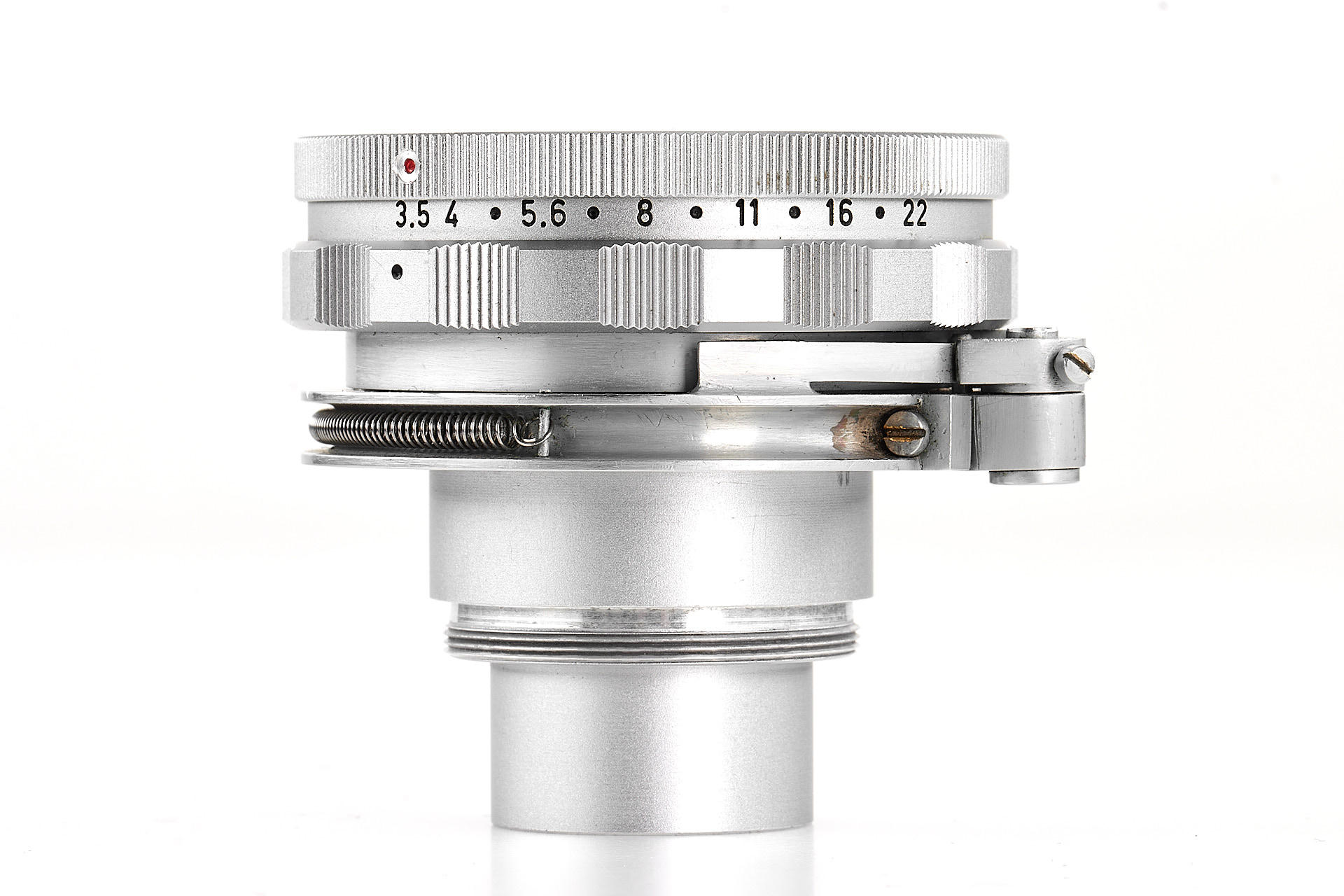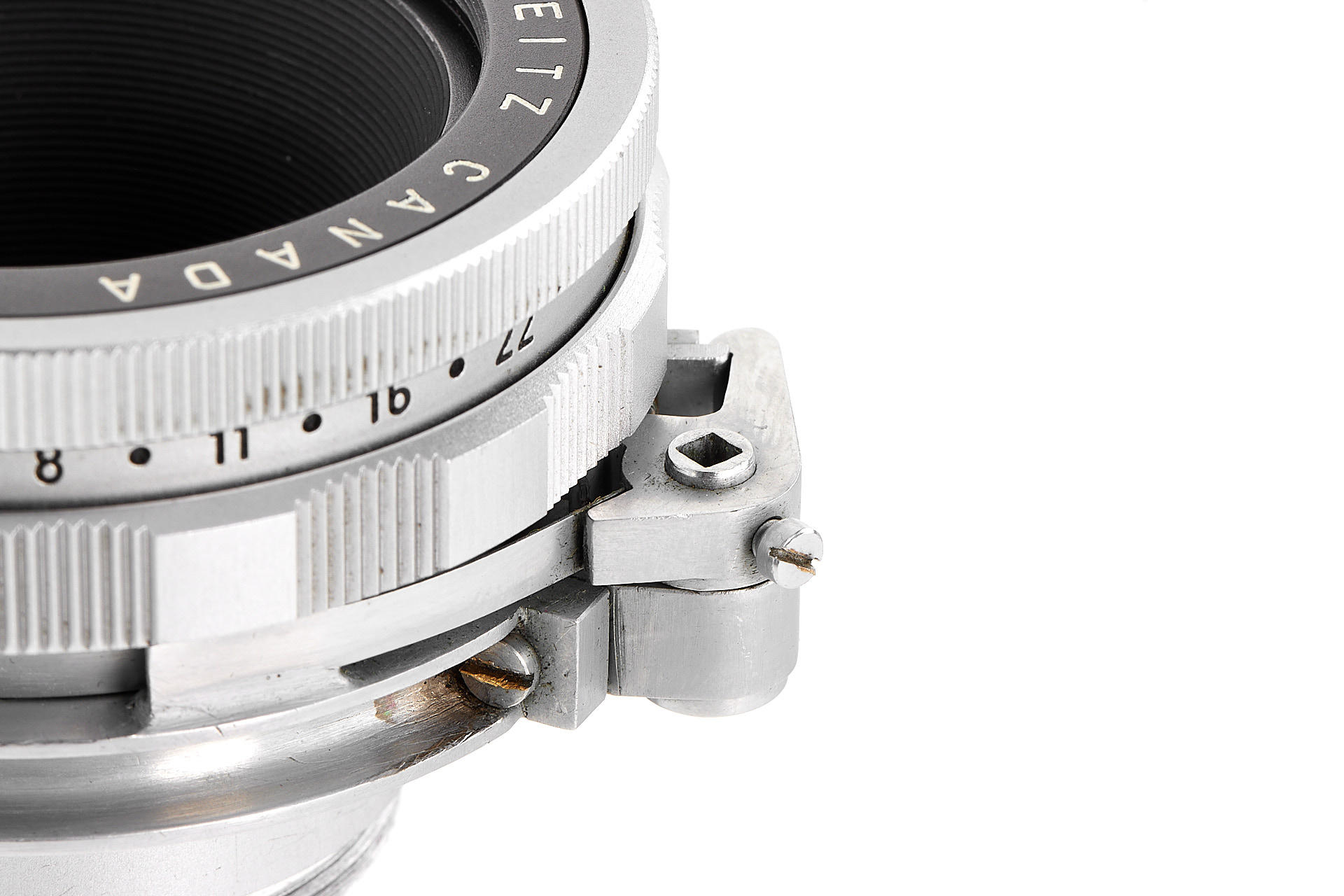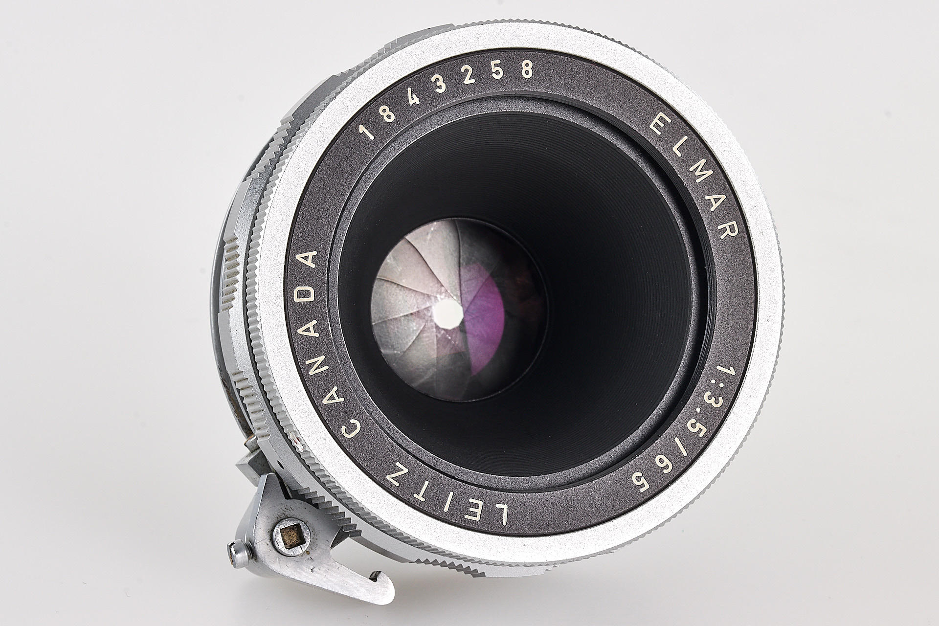 an interesting prototype Elmar 65mm for Visoflex, with spring-loaded aperture control. Until now, this feature was only known from the literature and was probably built for a special version of Visoflex. The lens is in excellent condition, with very good optics.
