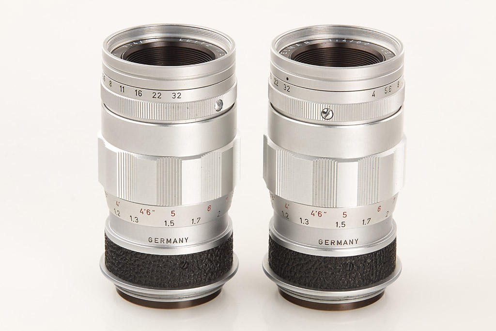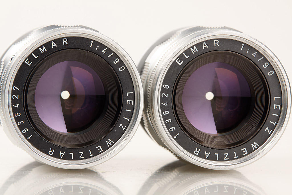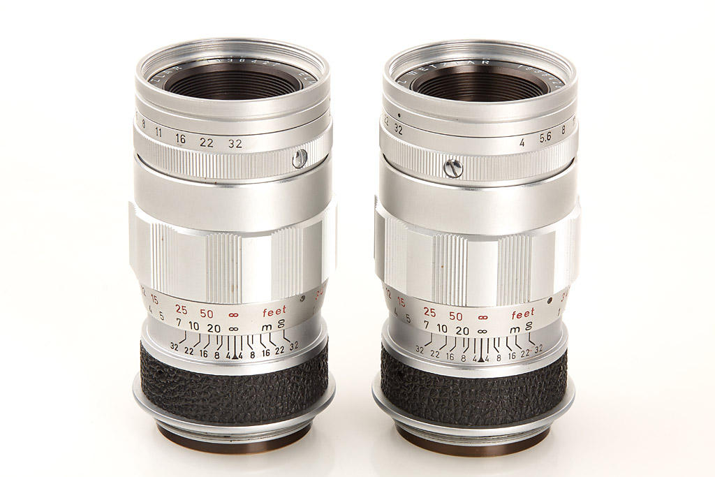 brand new pair of the rare screw-mount lens, complete with cap, keeper, maker's boxes with matching serial numbers - these lenses were prepared for the Swedish Army for use with black IIIg, but never used.