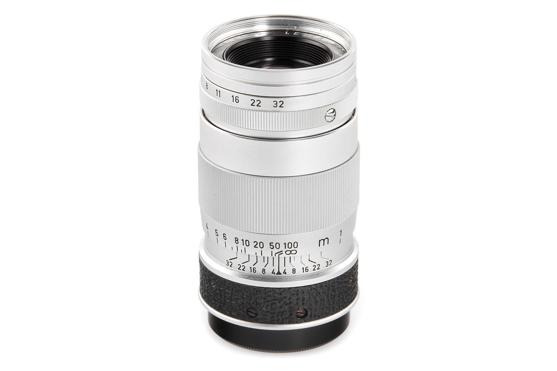 a special prototype 3-element Elmar in M39 mount, with a finely knurled focusing ring and without a serial number. The lens is in beautiful, near-mint condition, with very good optics. Exactly this lens can be seen in the book '10 Jahre Leica Historica' on page 98.