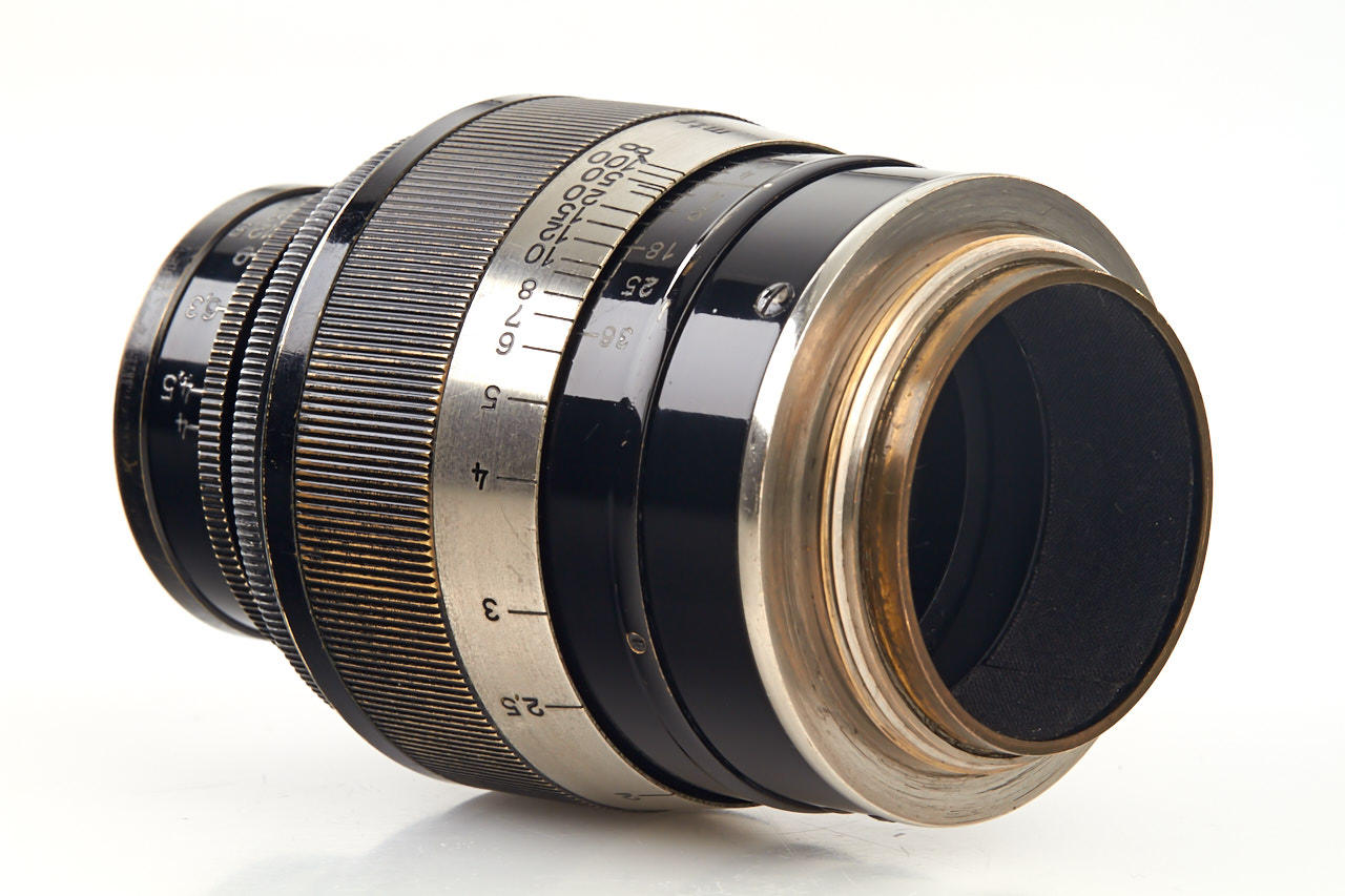 'fat' Elmar in black/nickel finish, in very good condition, with original front and rear cap