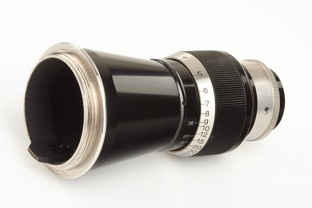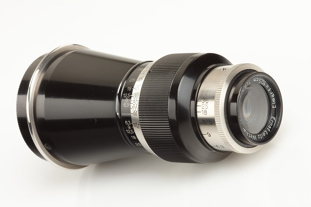 Mountain Elmar' in black/nickel, complete with hood and both original caps, red maker's box, a rarity in such almost new original condition, with matching black/nickel VIDOM universal finder in maker's box