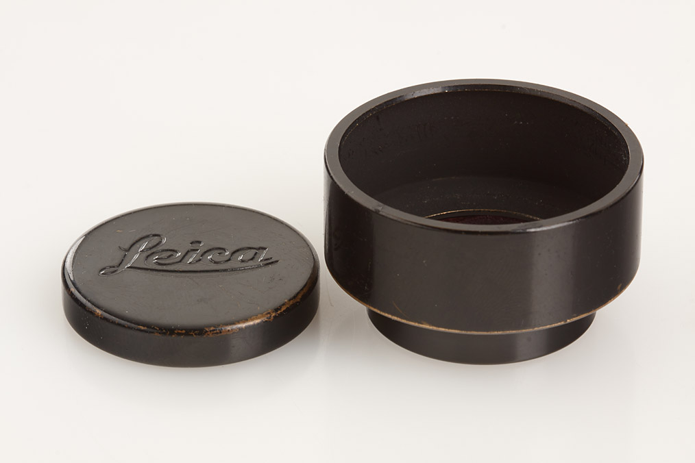 very fine black/nickel Mountain-Elmar, complete with hood, both caps, matching maker's box