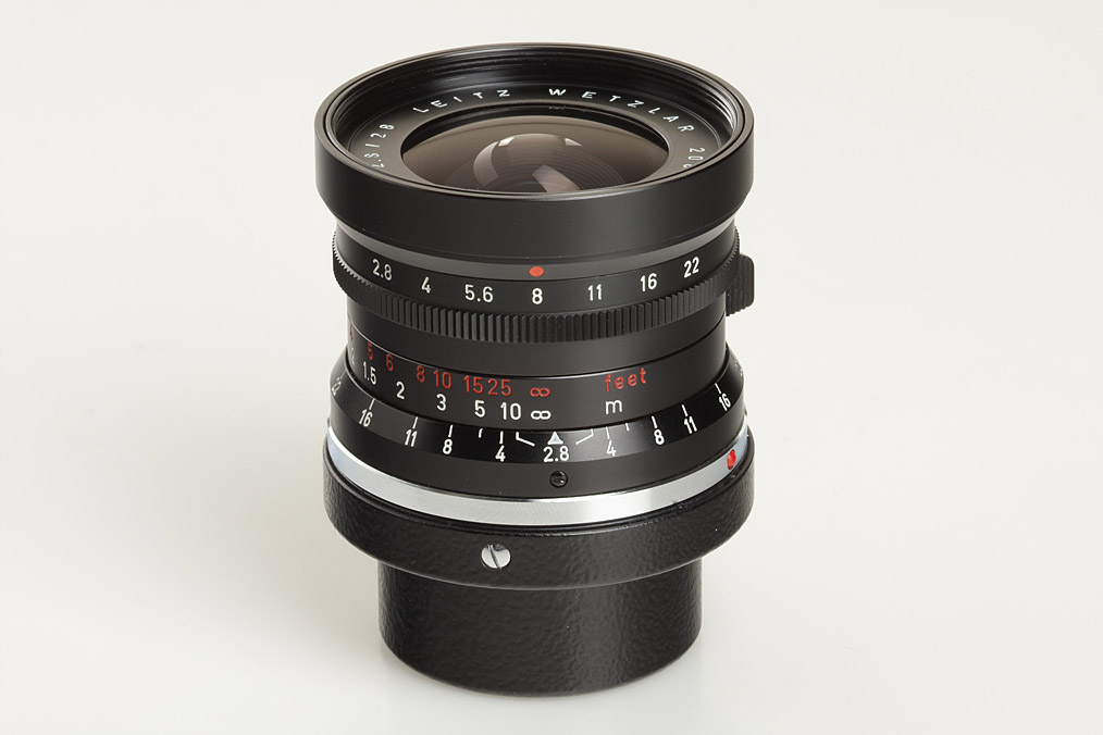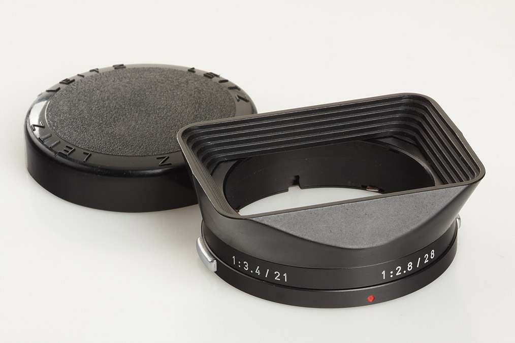 very rare, first type (9-element) Wetzlar Elmarit 28mm from the first batch in mint condition, clean lenses, both original caps, hood 12501M, original maker's box