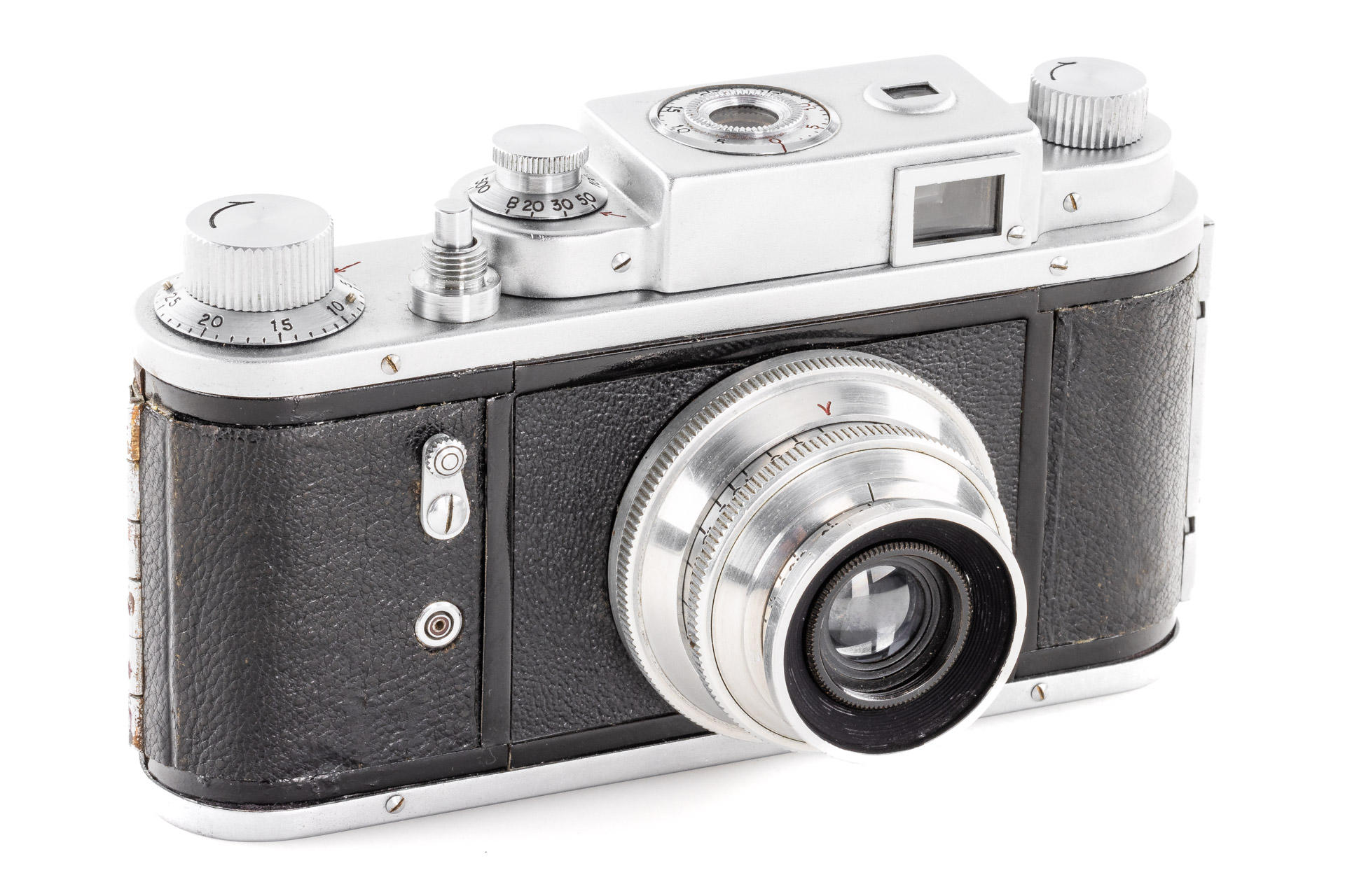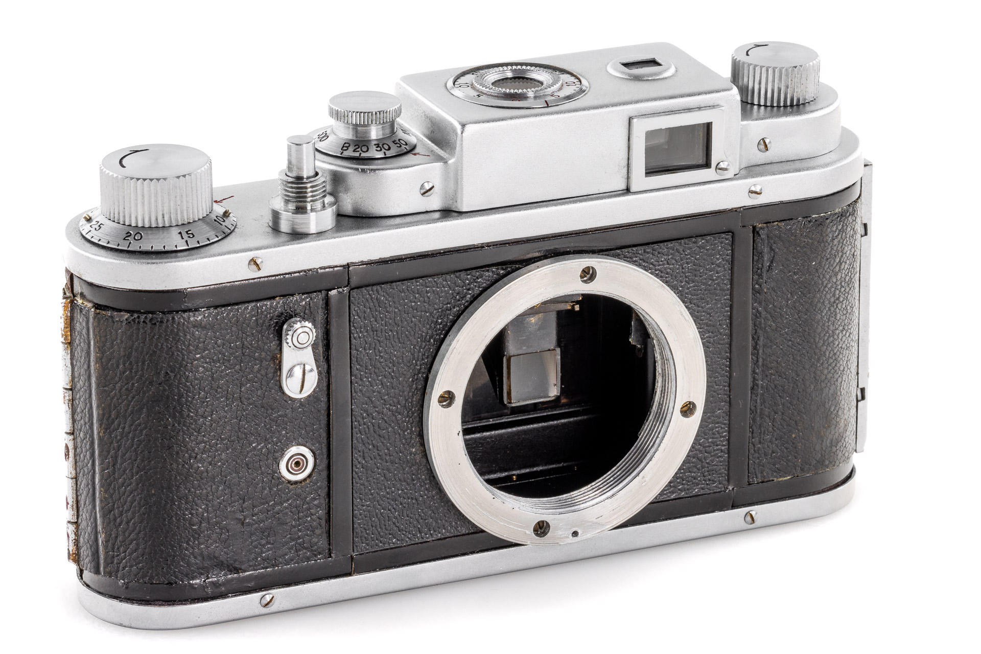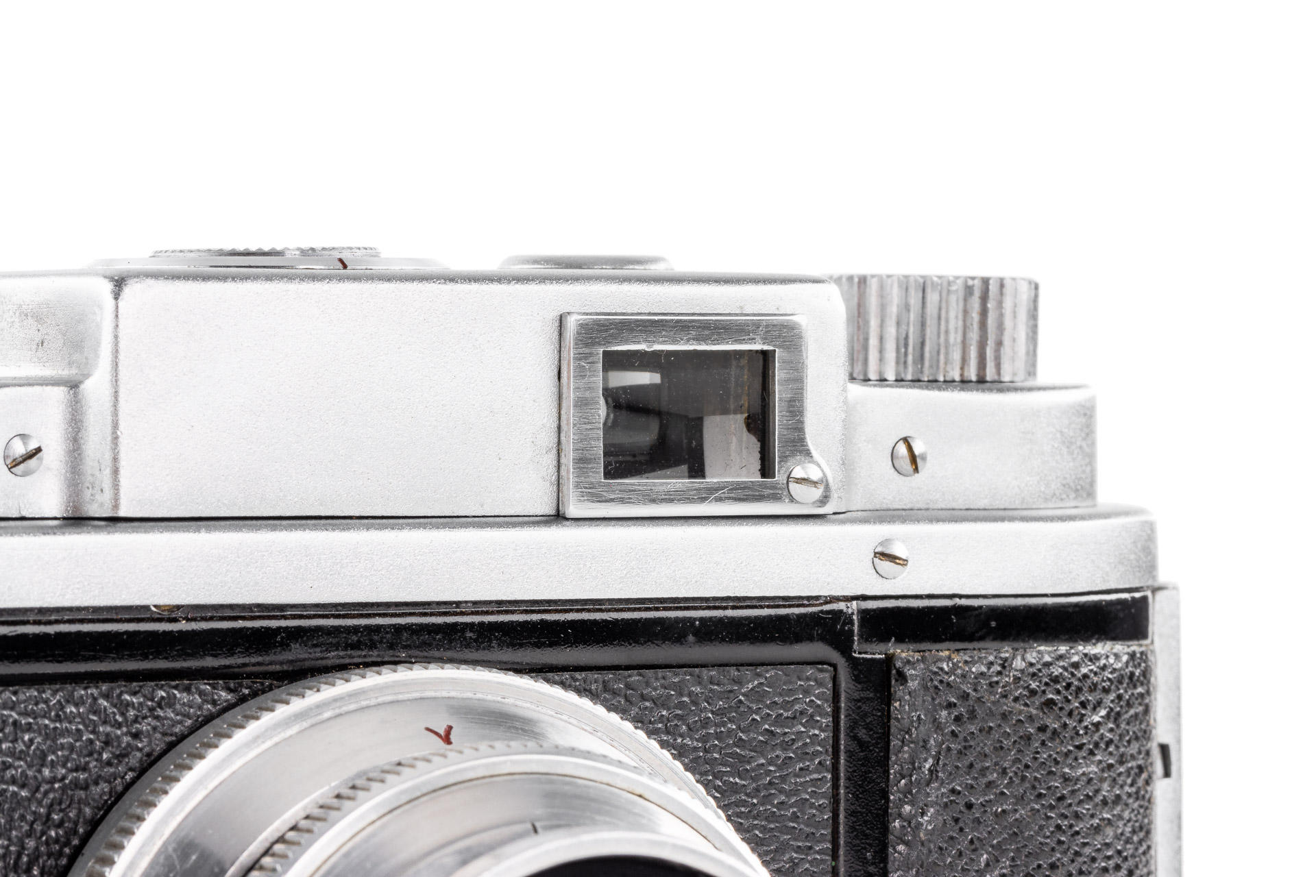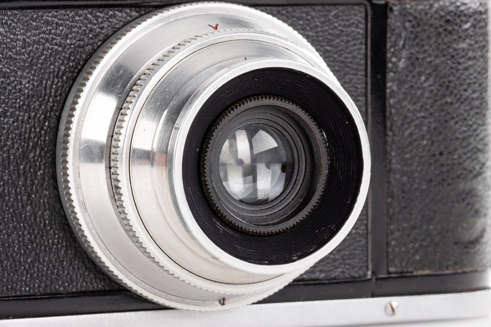 One of the rarest Leica copies in existence, the Eltina is a Japanese 35mm camera, designed and made by Shinjiro Ehira (founder of the Ehira Optical Works). This special camera incorporates a unique periscope focusing system, viewfinder with parallax correction and interchangeable lenses. It is for sure one of the most interesting and technically advanced Leica copies in existence. The offered model is in beautiful, near-mint condition and working order; comes with an unmarked lens and leather case. Another prototype Eltina (slightly different, already engraved with the camera name) is illustrated in 'The Collector's Guide to Japanese Cameras' on page 160.
