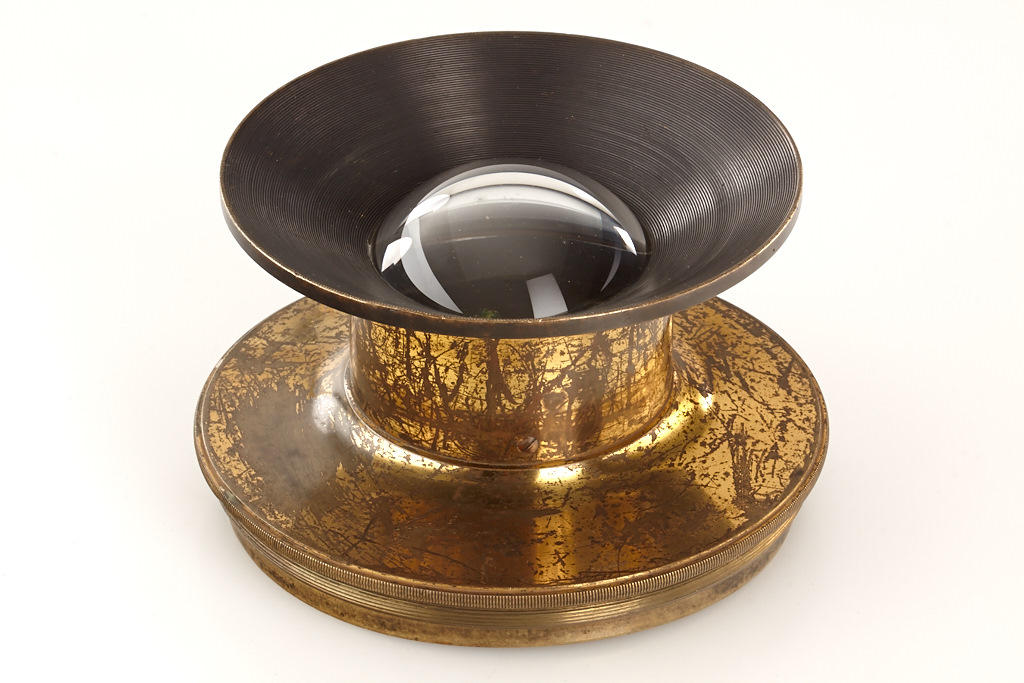 large Pantoscop for waterhouse stops, lens diameter c.6cm, approx. 35cm focal length, total height 8cm, total front diameter 12cm