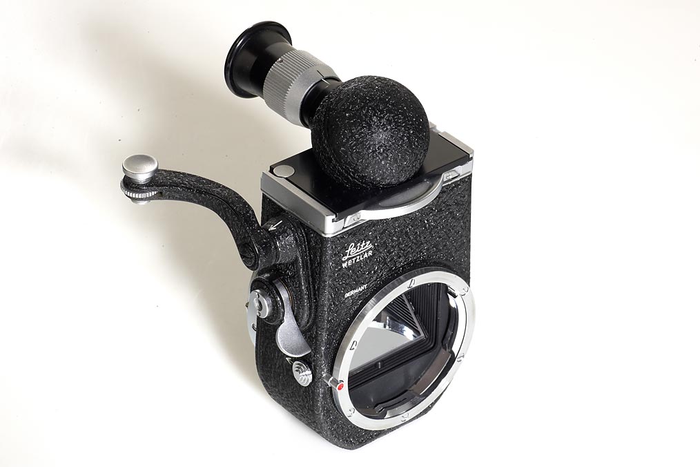 rare Endo-Visoflex for M-mount cameras with special 90° viewfinder, interchangeable focusing screen, maker's box with a sticker: 'Sonder Ausführung' (special version)