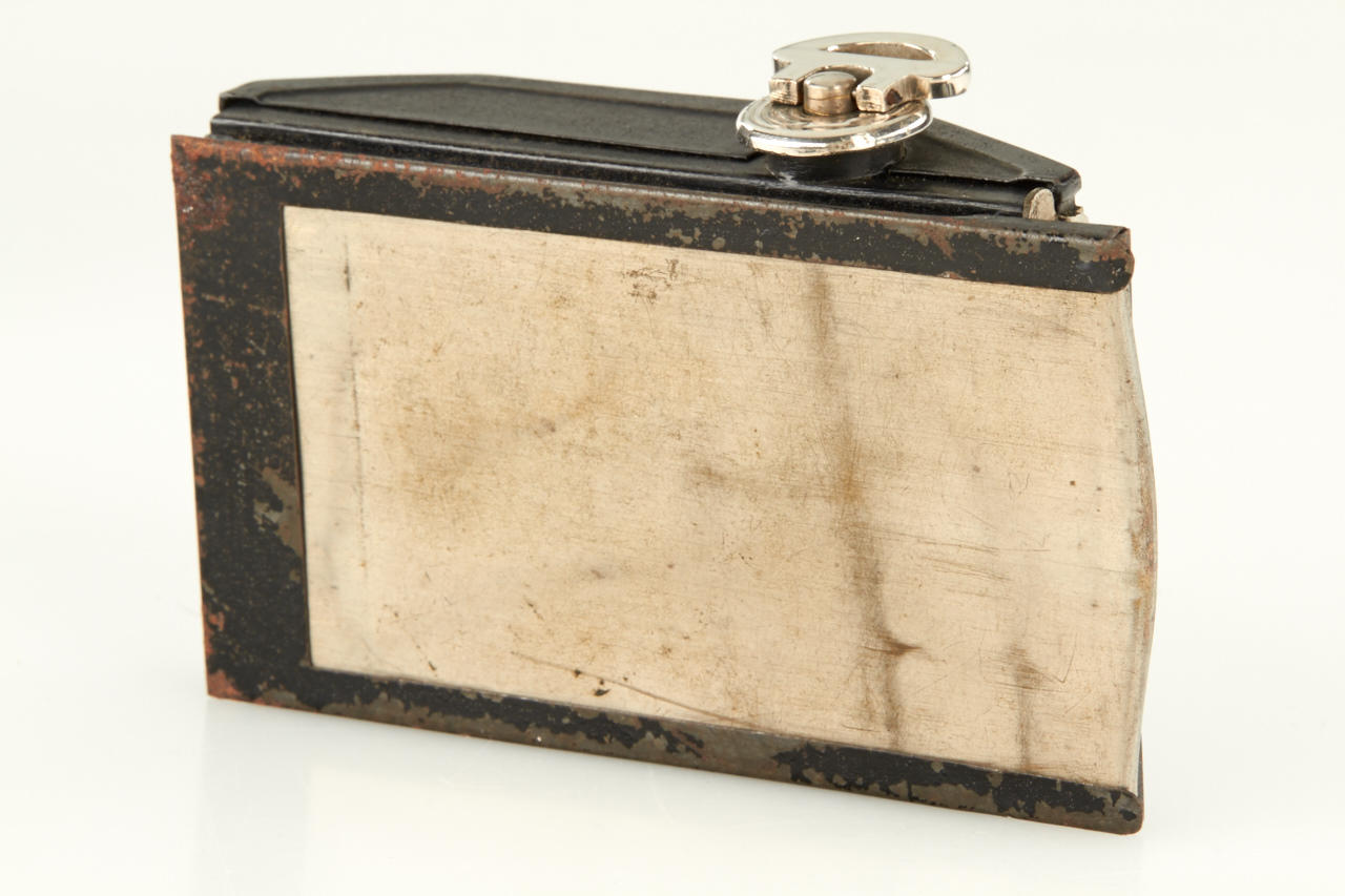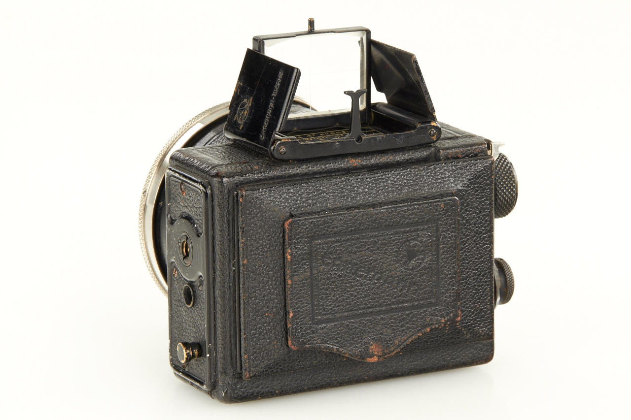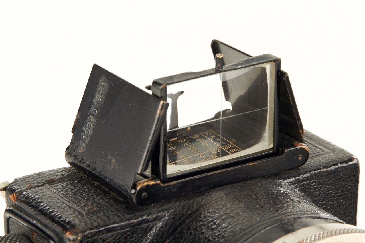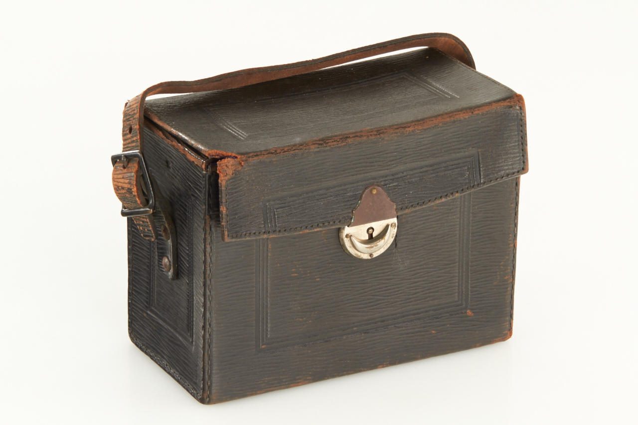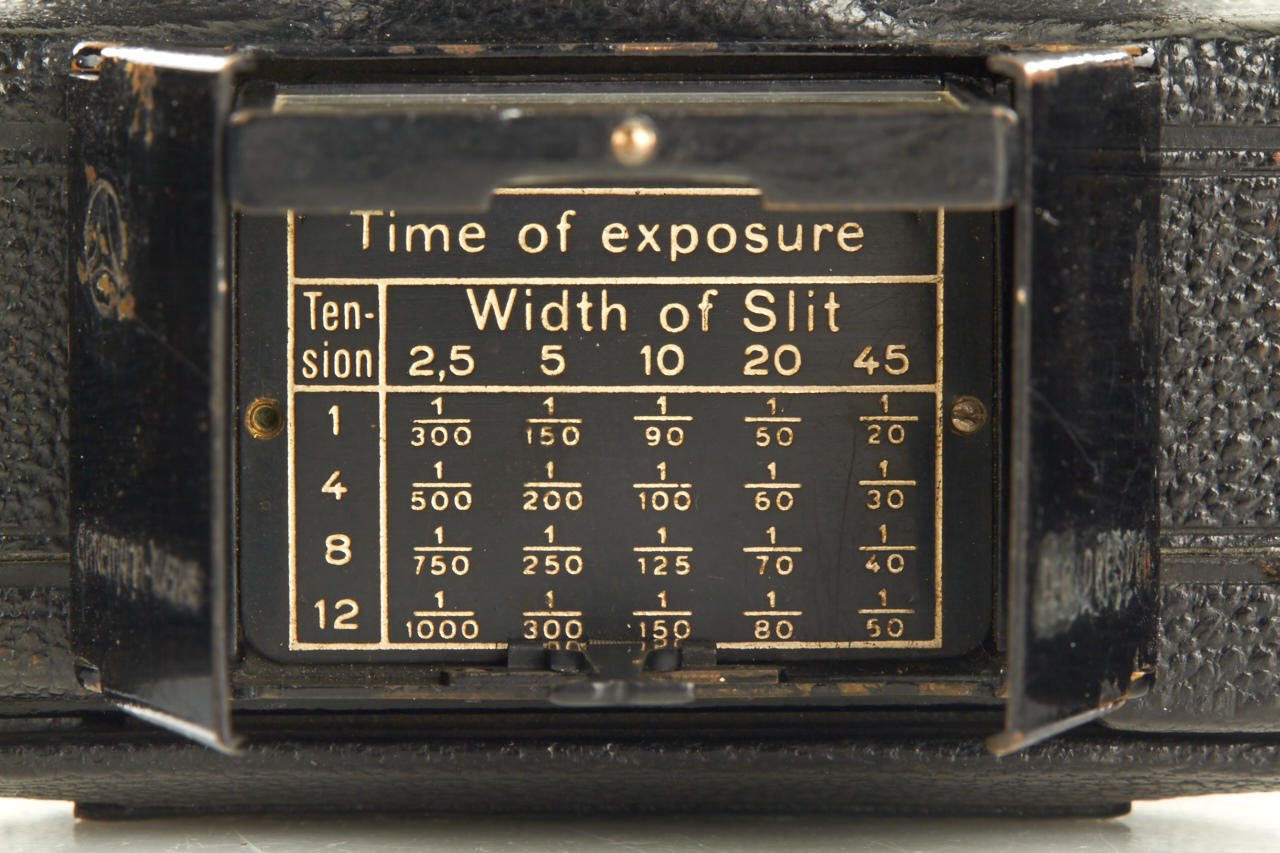 very early Ermanox with fast Ernostar 2/10cm no.150283 in good condition (focal plane shutter needs attention), early heavy mount version with 1600g weight, inclusive roll film back and original Ernemann leather case