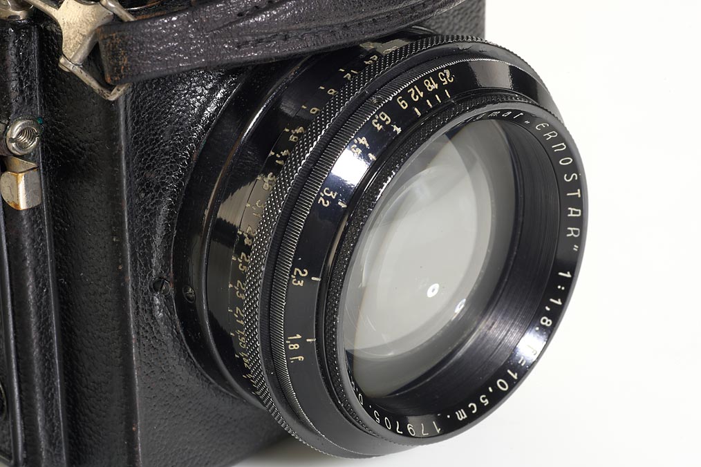 4.5x6cm, early and very rare SLR with Ernostar 1.8/10.5cm no.179705, focal plane shutter, in excellent original condition, strap, cap, focusing screen adapter,shutter in working order
