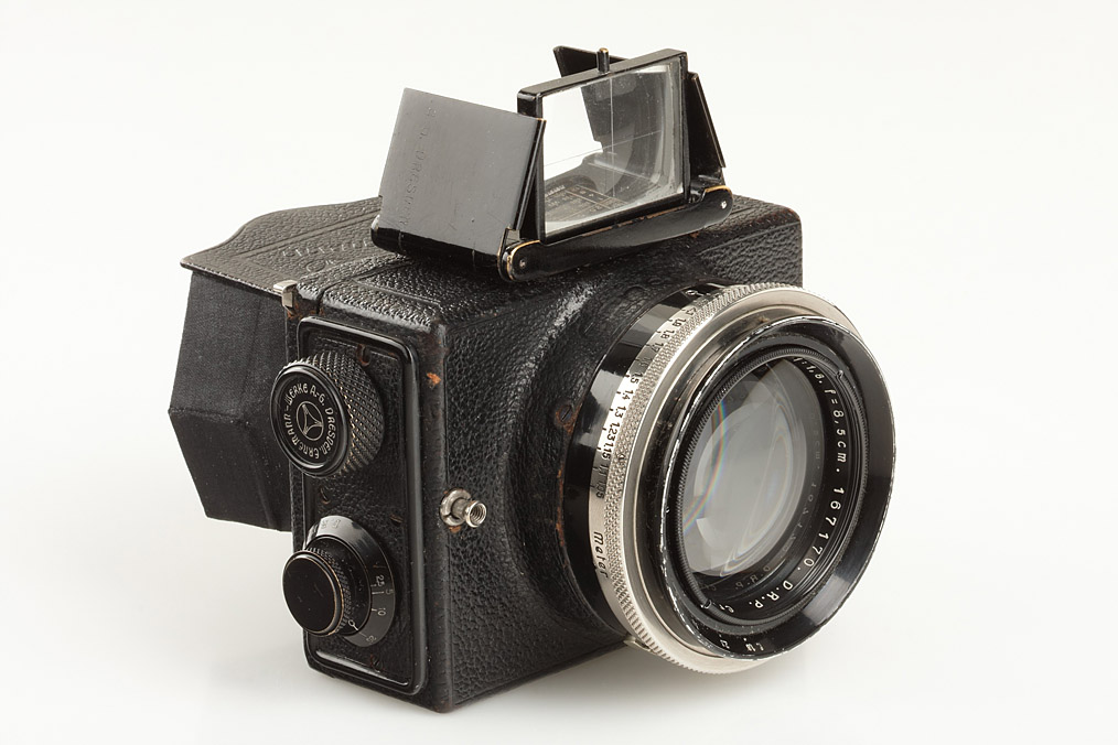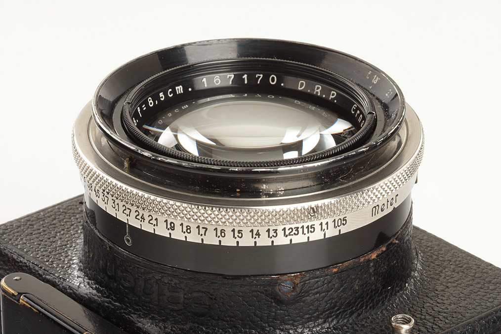 4.5x6cm, very late Ermanox in good working order, with Ernostar 1.8/8.5cm no.167170 (clean lenses), very rare original maker's box