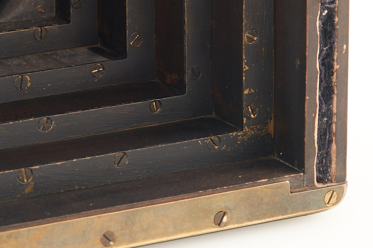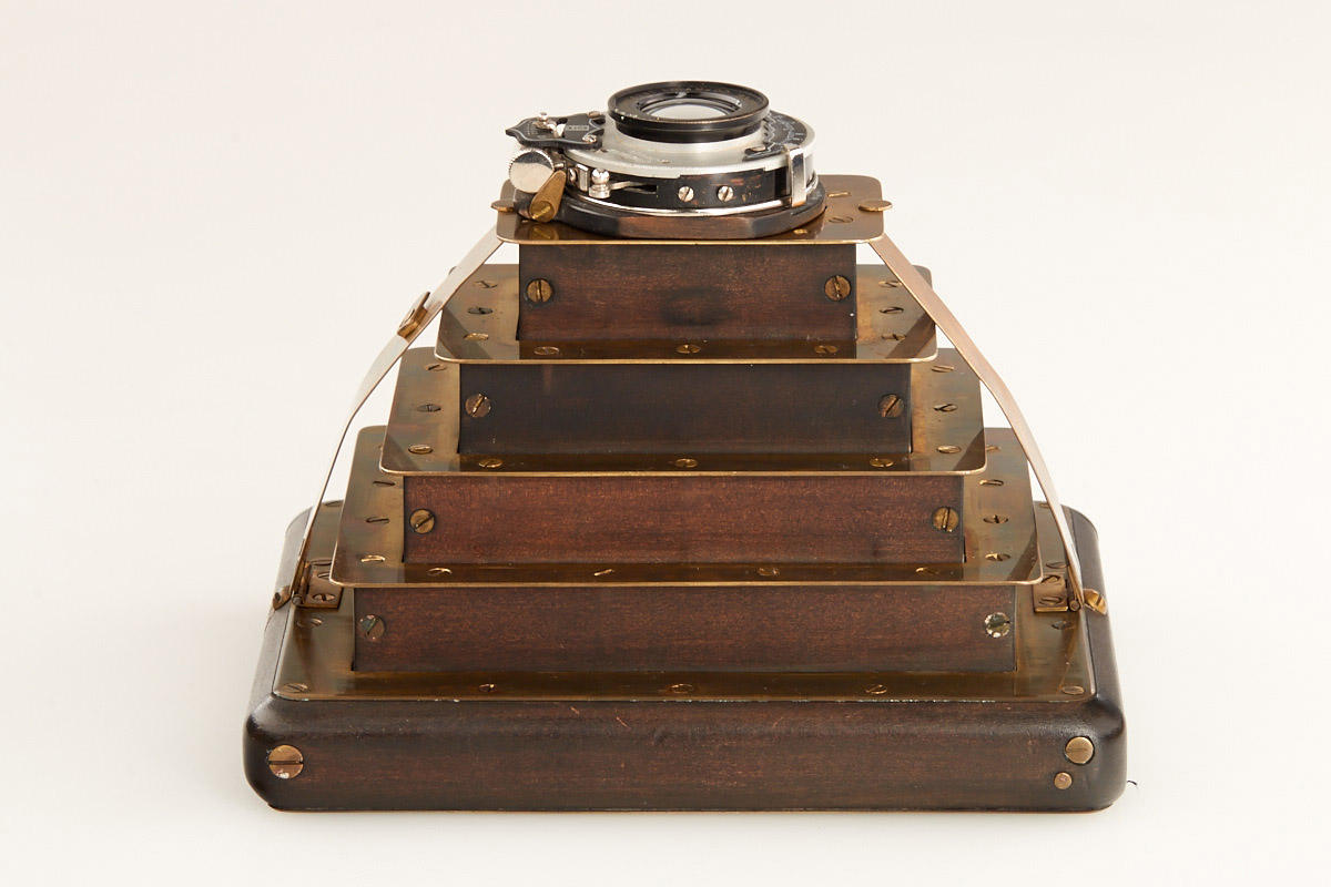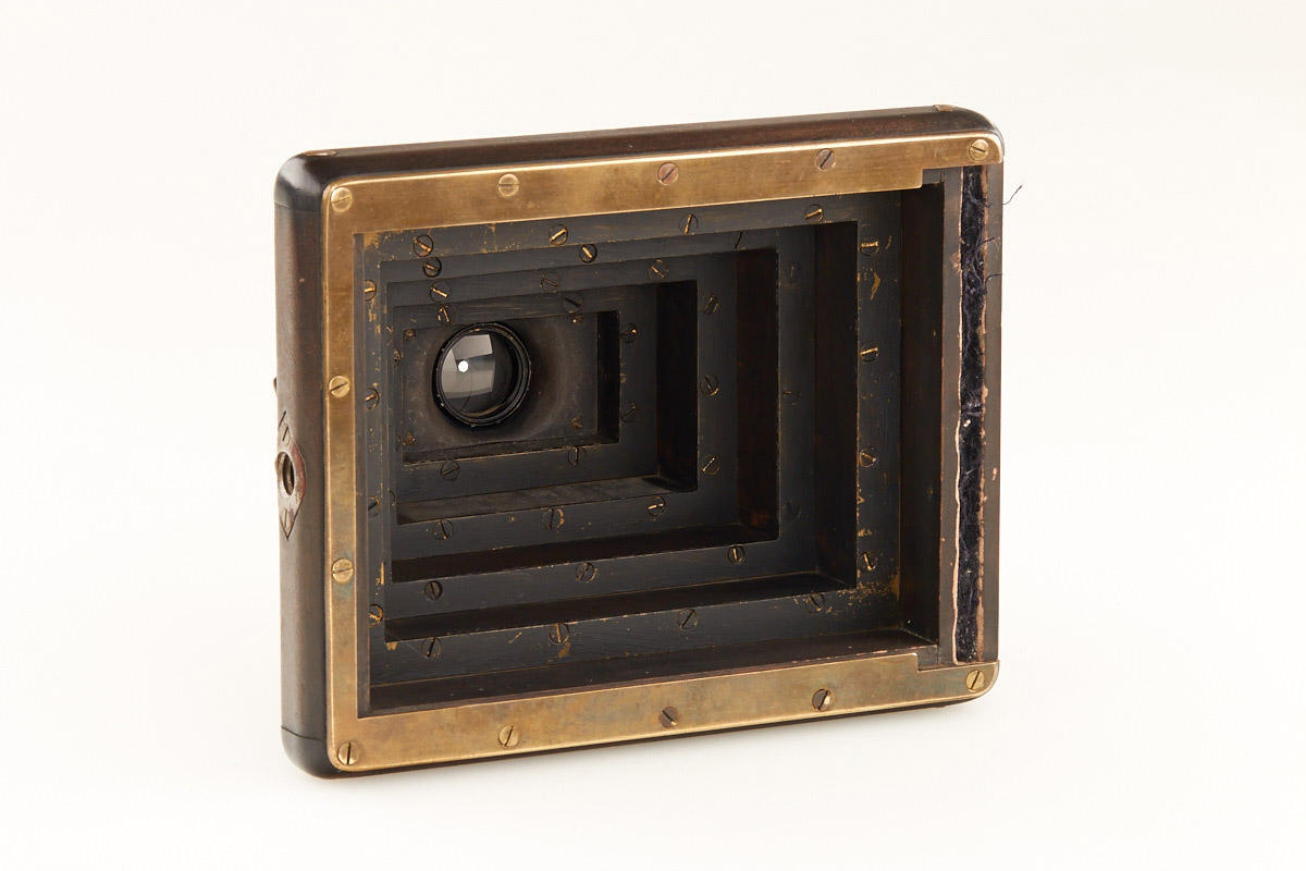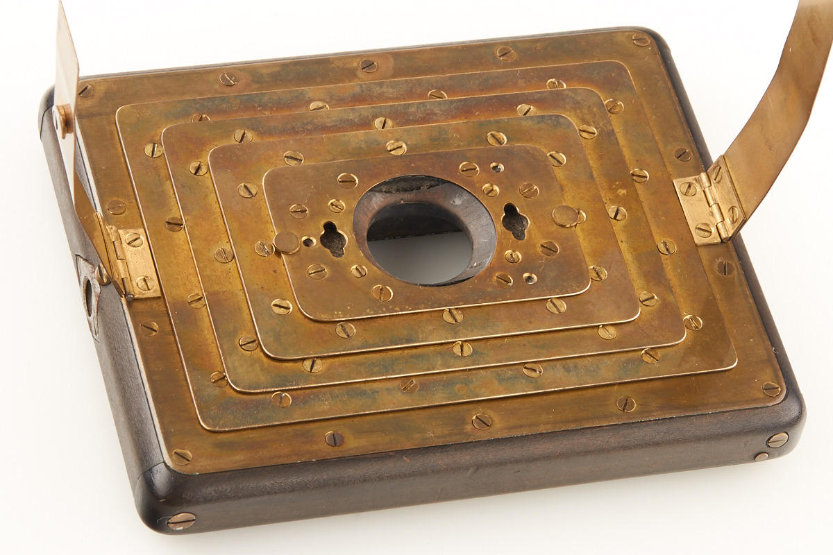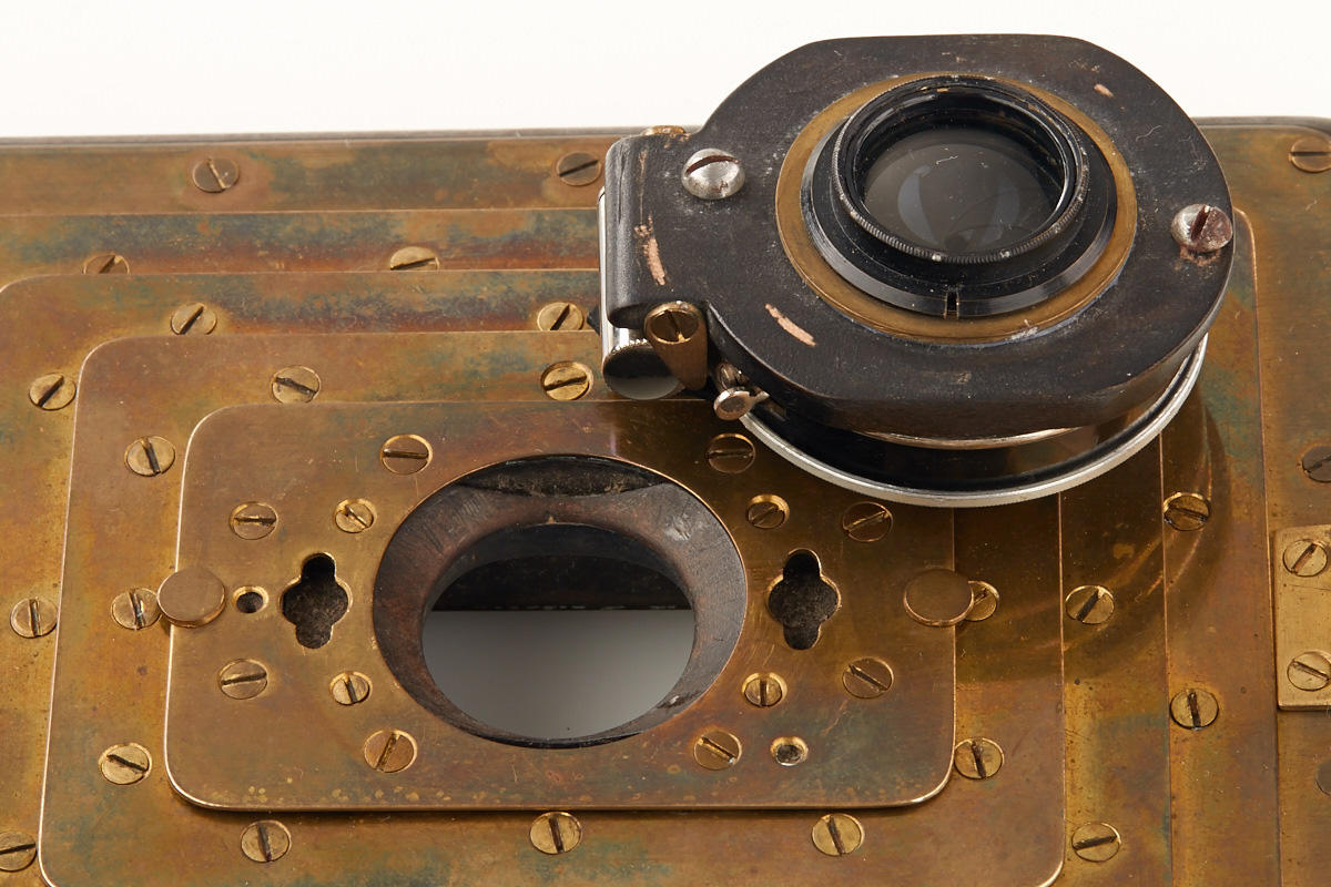 very rare, probably unique flat folding plate camera for 10x13cm plates in beautiful original condition, illustrated in Abring's "Von Daguerre bis Heute" Vol.4 page 185, with Ernemann Detectiv Aplanat no.112046 in Ernemann shutter