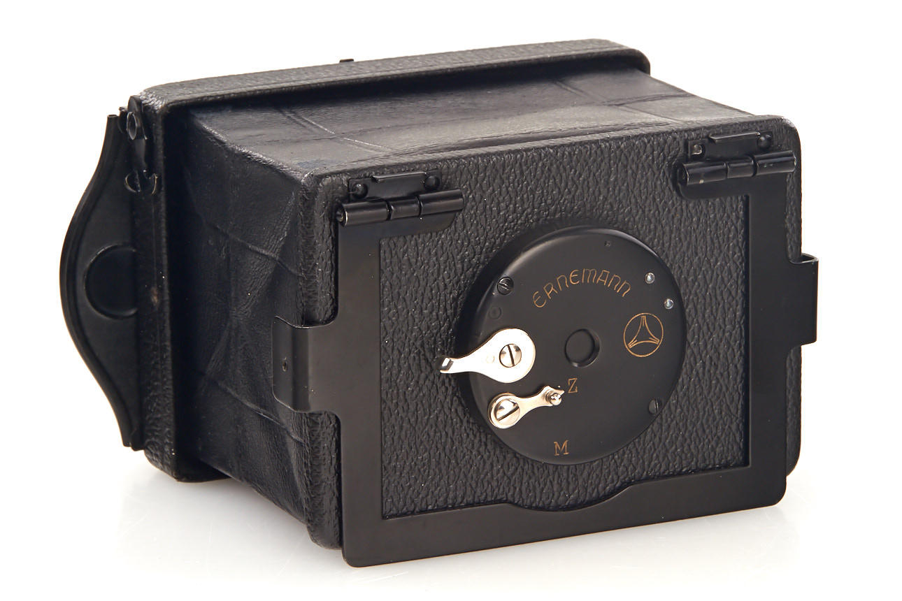 4.5x6cm camera folding to small dimensions, with original celluloid focusing screen, one film holder and maker's box, in beautiful, near mint condition