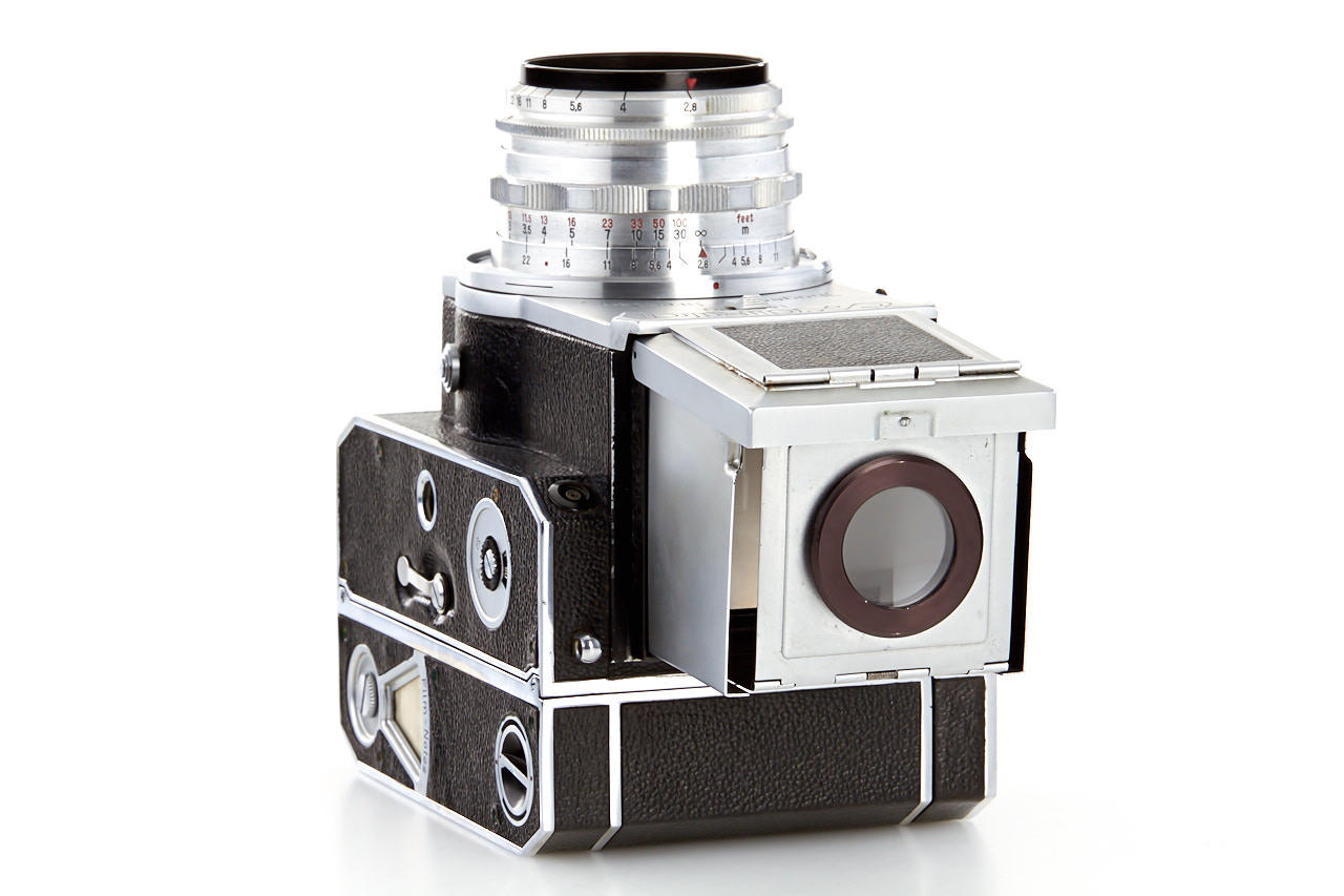 6x6cm SLR, rare post-war type, in near mint cosmetic condition, with T-coated Tessar 2.8/80mm no.3691603, original brochure from 1954