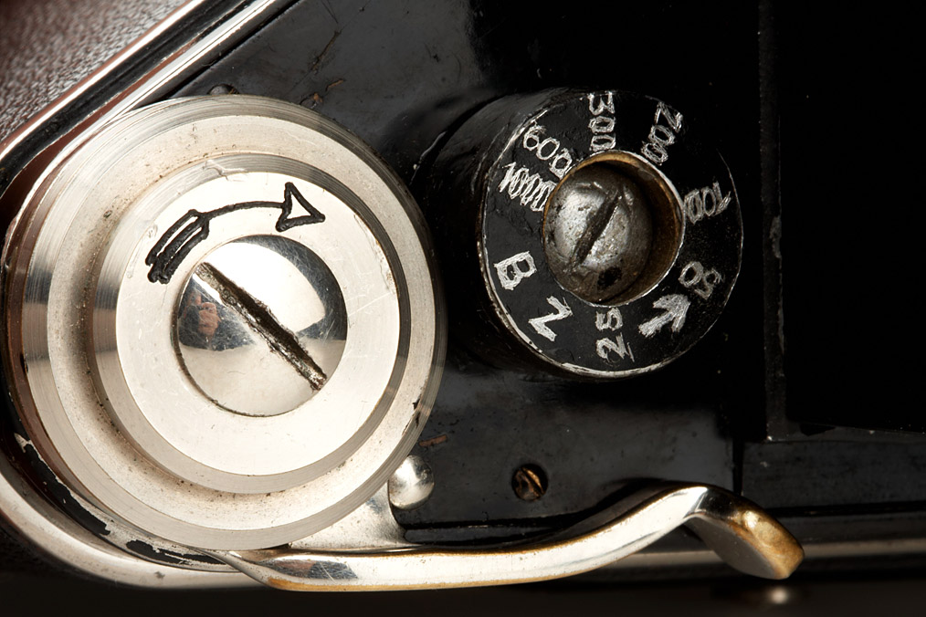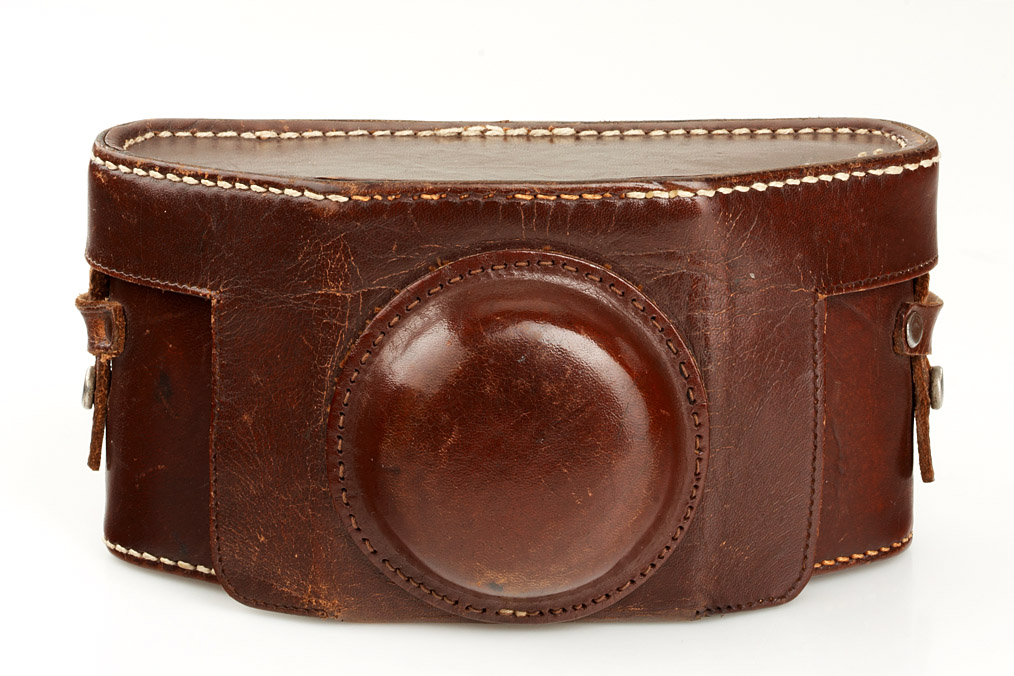 4x6.5cm, extremely early camera with Schneider Xenar 3.5/7cm no.518145, some modifications into version 3 (lever rewind, sliding cover on back door, shutter speed dial, finder hood), shutter sticky, case
