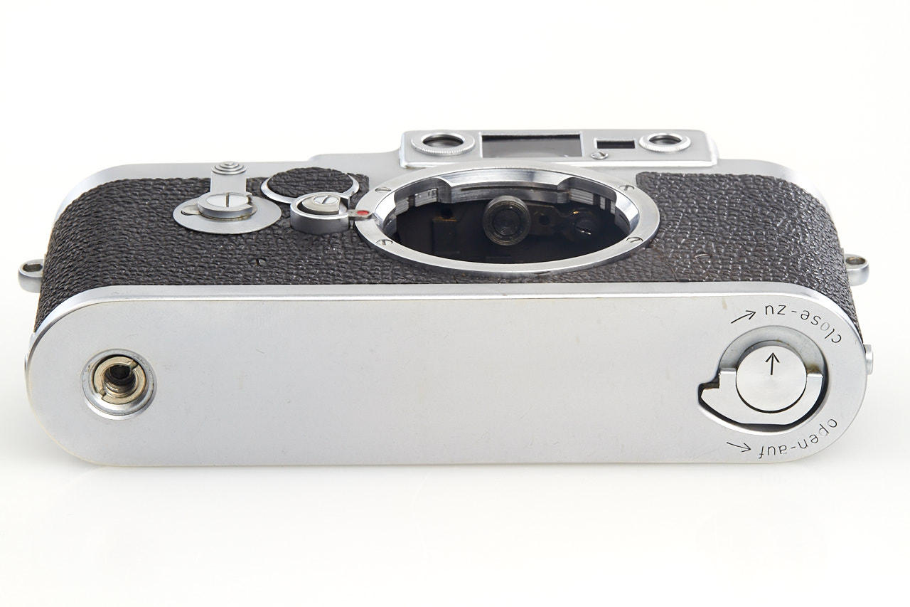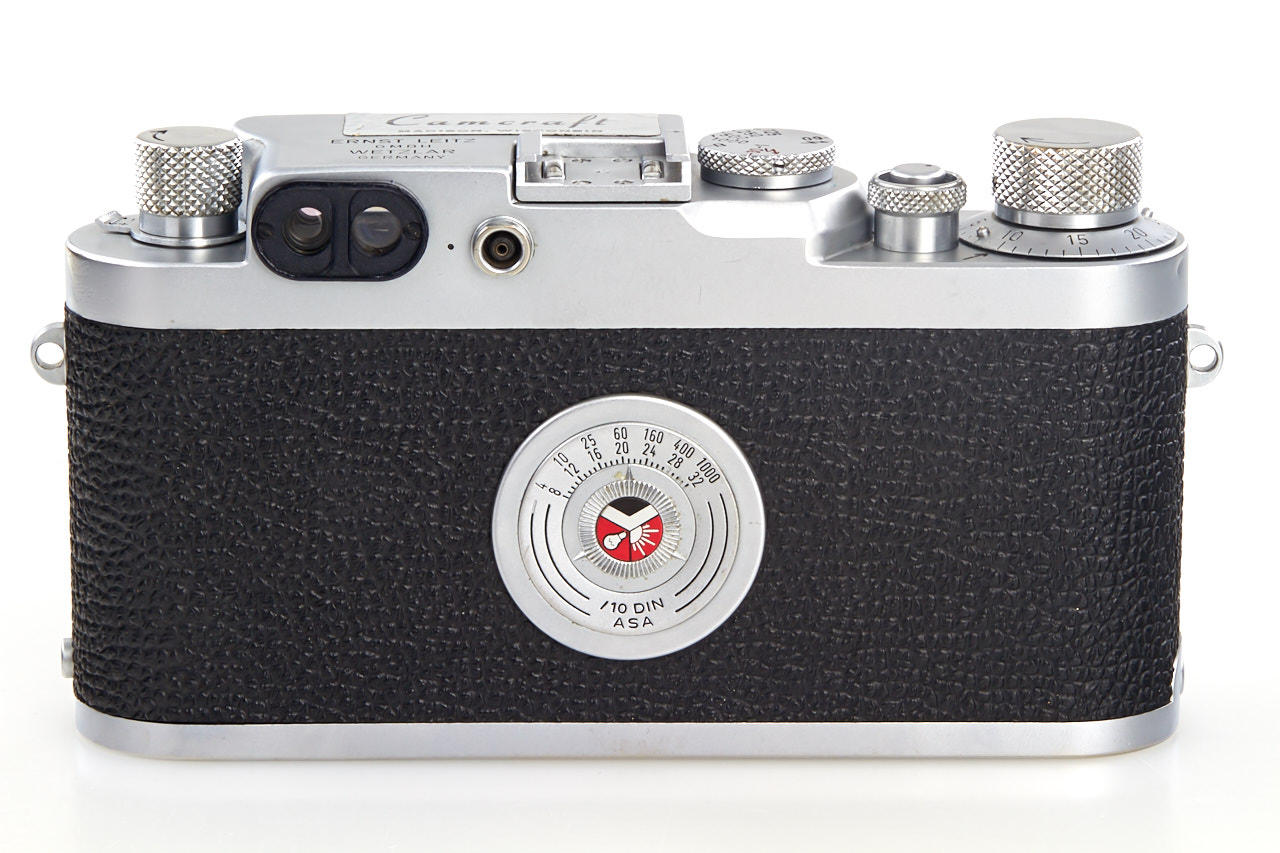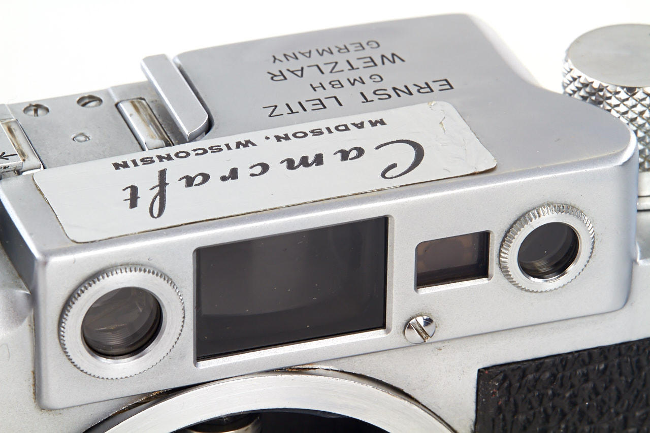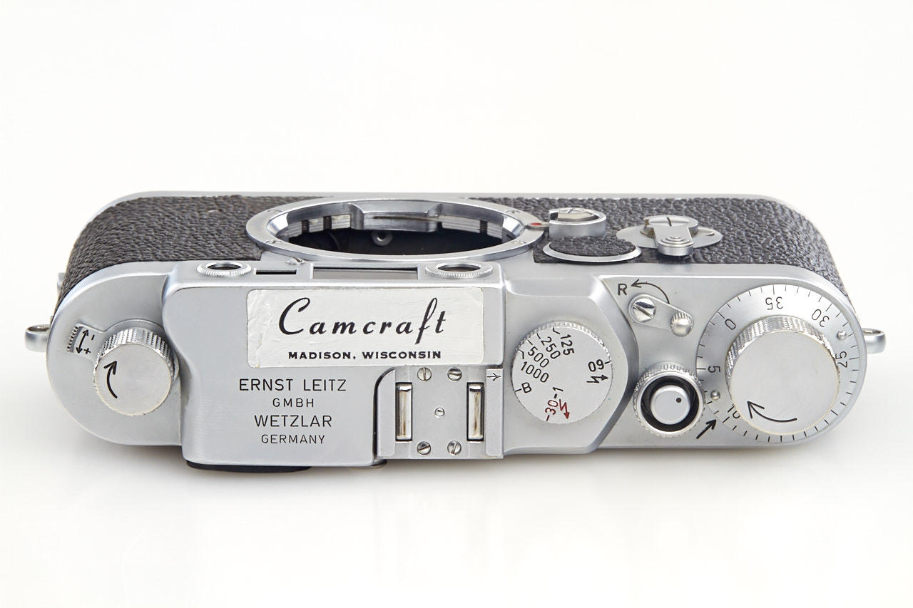 IIIg with M-bayonet mount, without slow speed mechanism but with self timer, The conversion to M-mount was done in conjunction with Leica by Camcraft and Norman Goldberg and is one of very few prototypes produced. Norman Goldberg is the inventor of the Camcraft N-5 motor for the M2 and MP and invented many accessories and improvements for Leica. With Camcraft sticker on top plate and in fine and perfect working order.