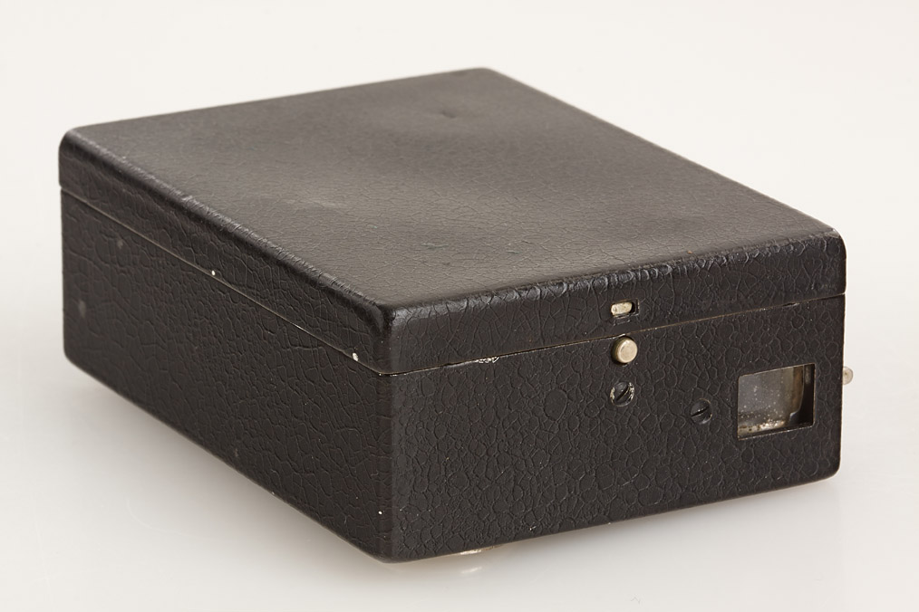very rare all metal miniature box camera with focal plane shutter and rotating finder in near mint condition
