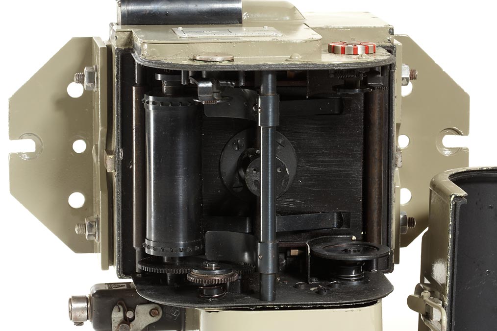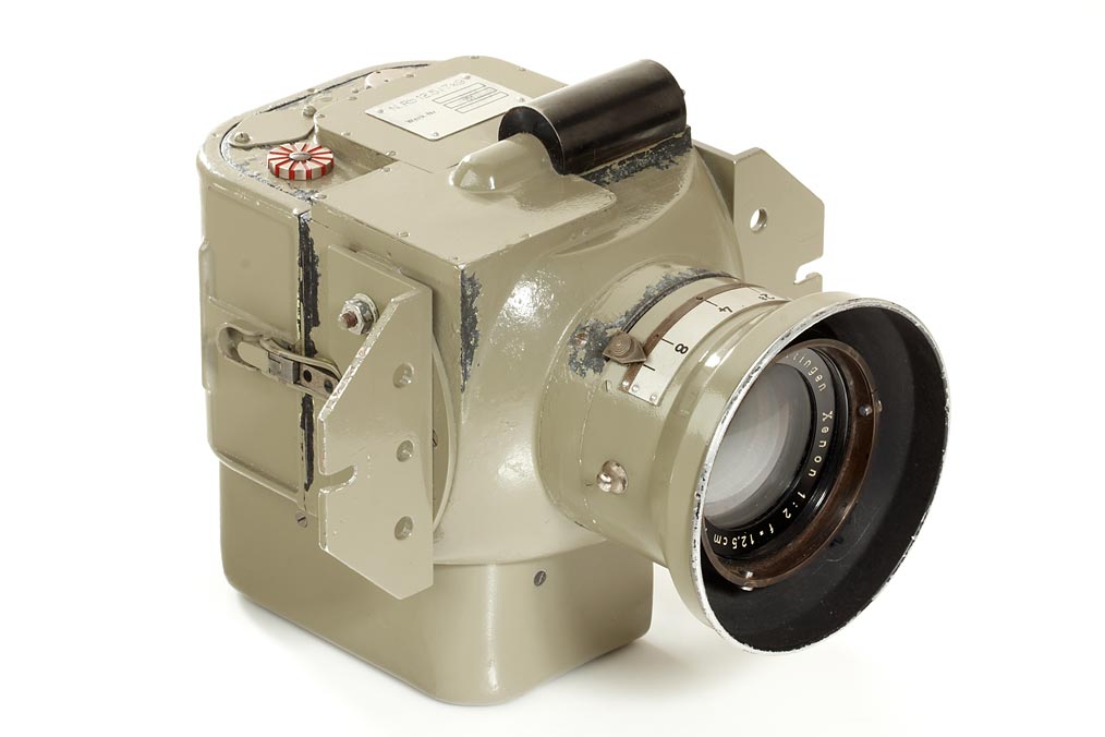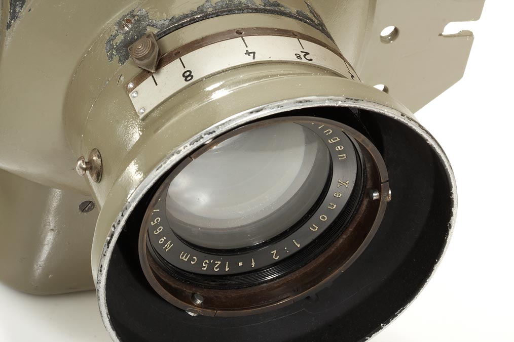 Reihenbildner 7x9cm, grey painted German WWII aerial camera with electric motor drive, Xenon 2/12.5cm no.6573, Meßfarbfilter D no.1065, grey painted military case with instructions