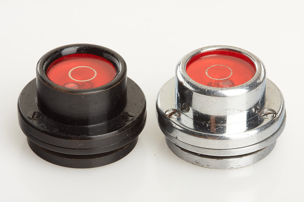 (1) black spirit level in near mint condition with maker's box, (2) rare chrome spirit level in fine condition