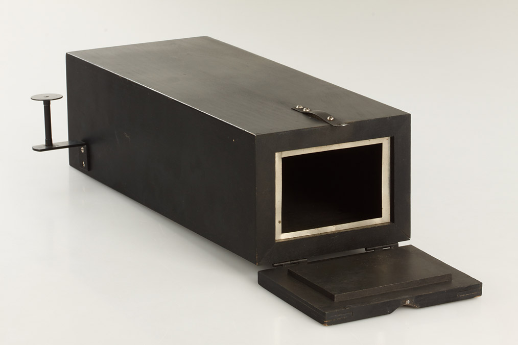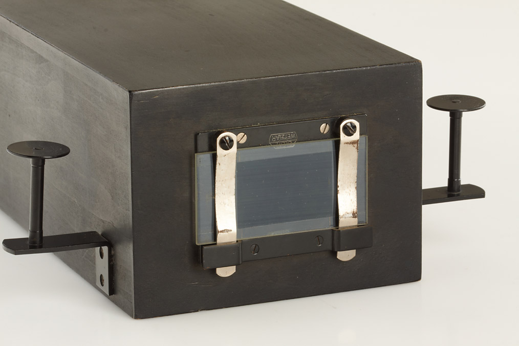 the first Leitz enlarger, black painted wood, 64mm fix-focus lens, for daylight, for enlargements to 2 3/8 x 3 5/8", in very fine original condition with glass and handle - see Lager Vol.III p.227
